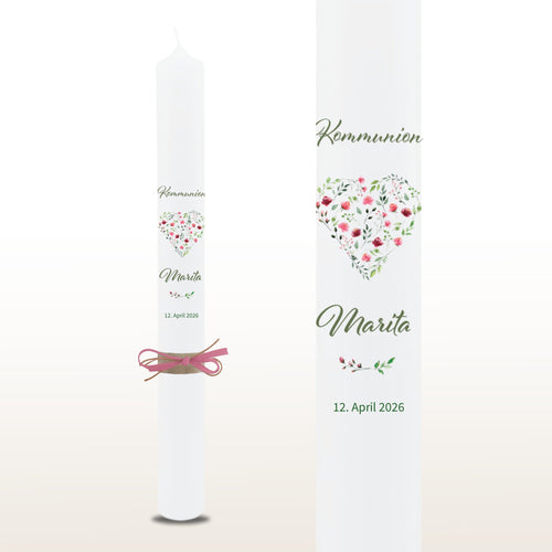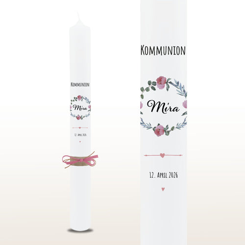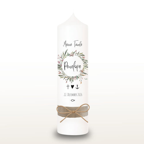 Taufkerze "Penelope" Blumenkranz - personalisiert
