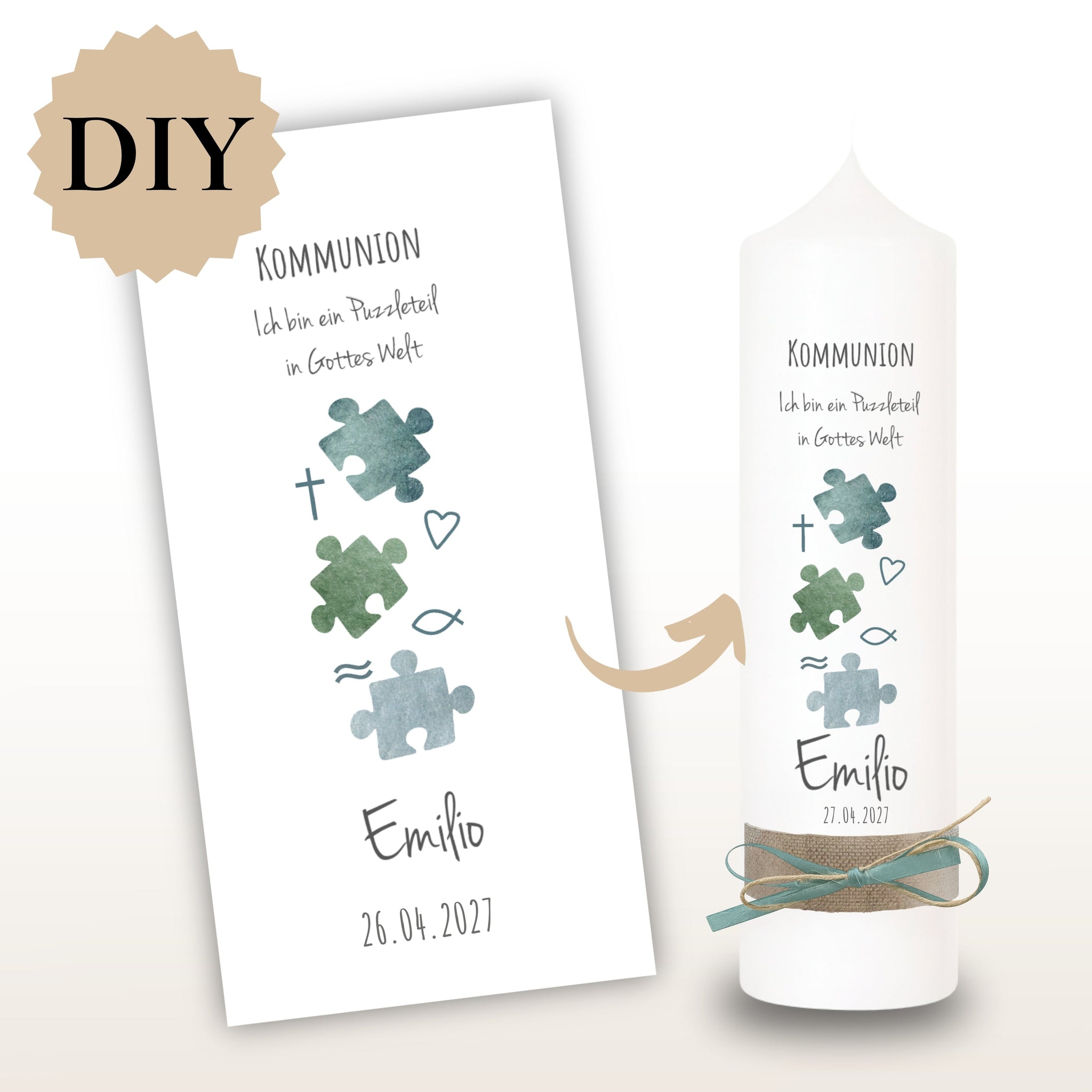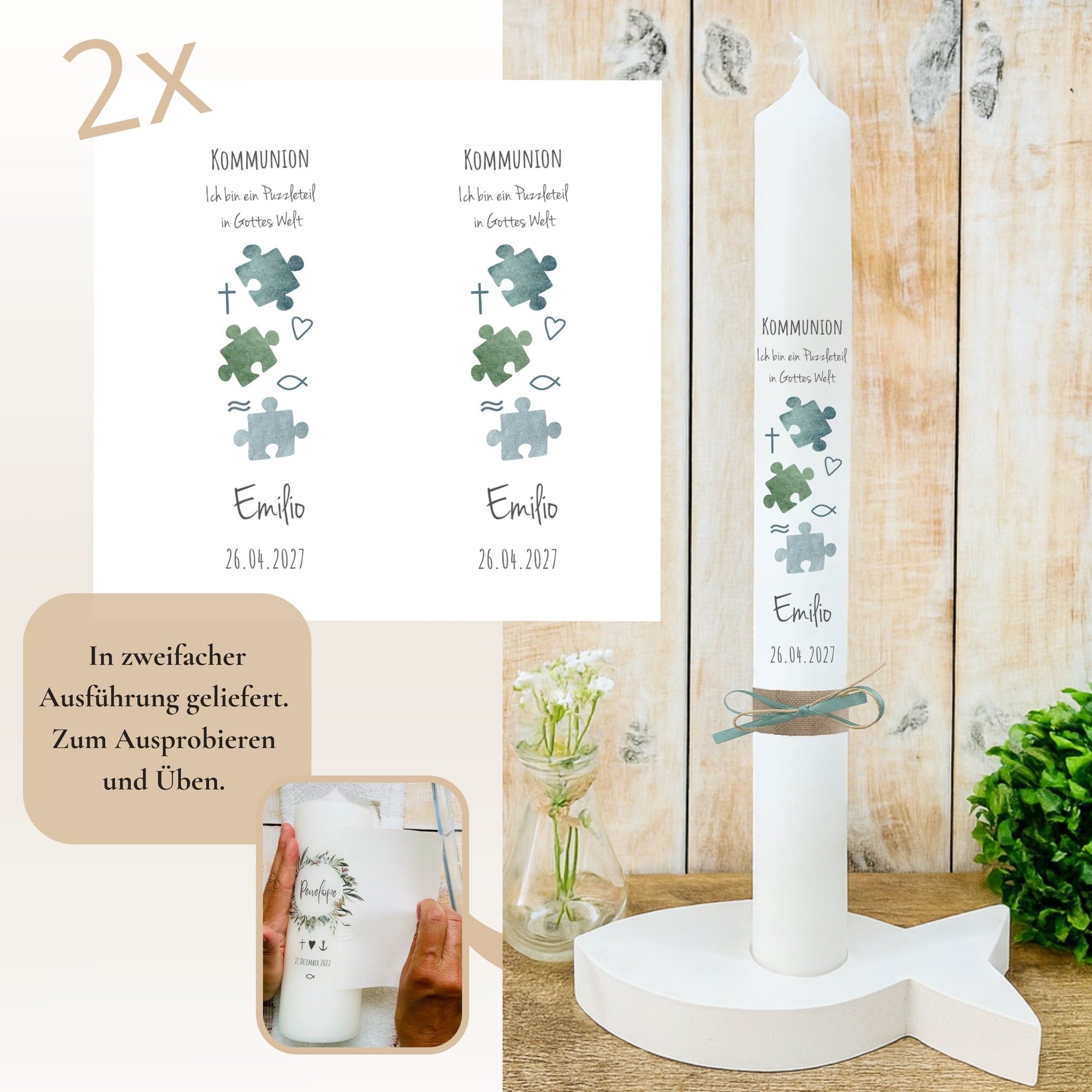 • Lade das Bild in den Galerie-Viewer, Kerzenfolie Kommunionkerze "Emilio" - personalisiert