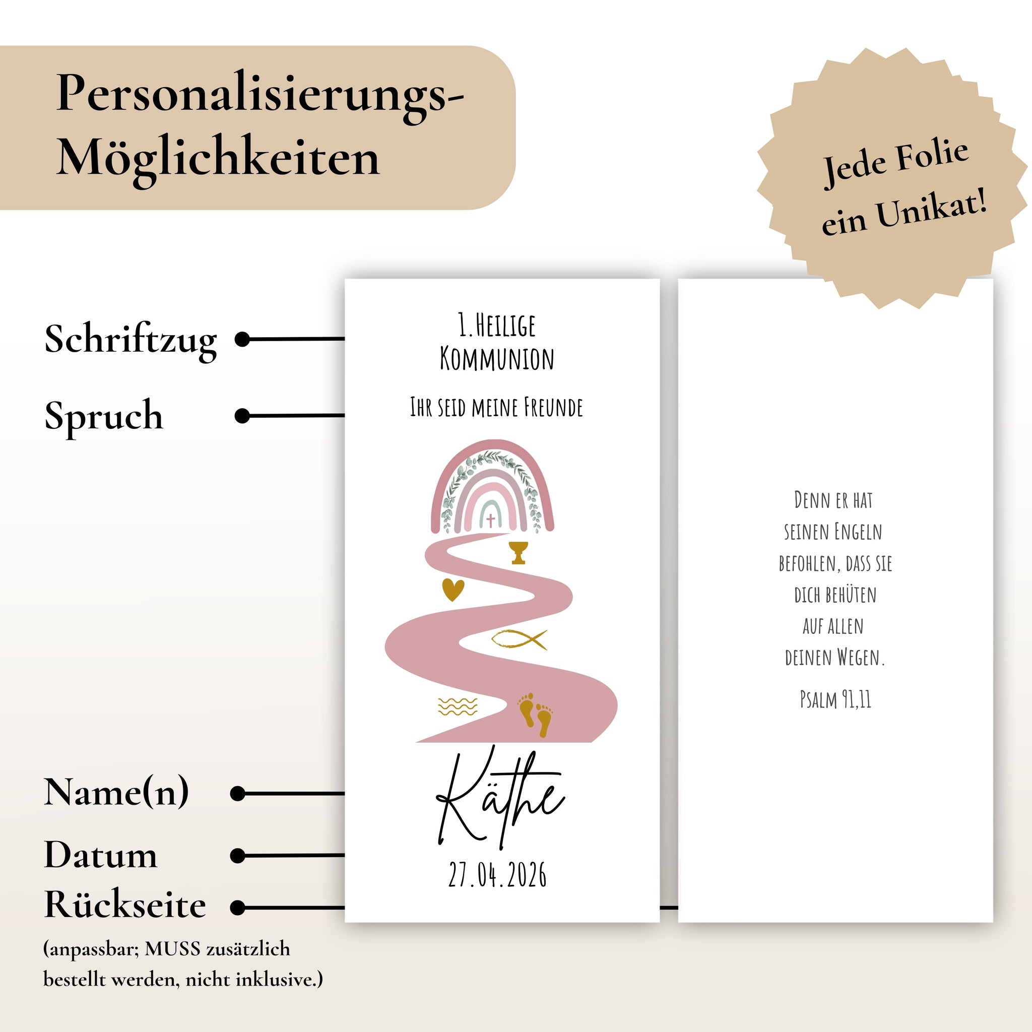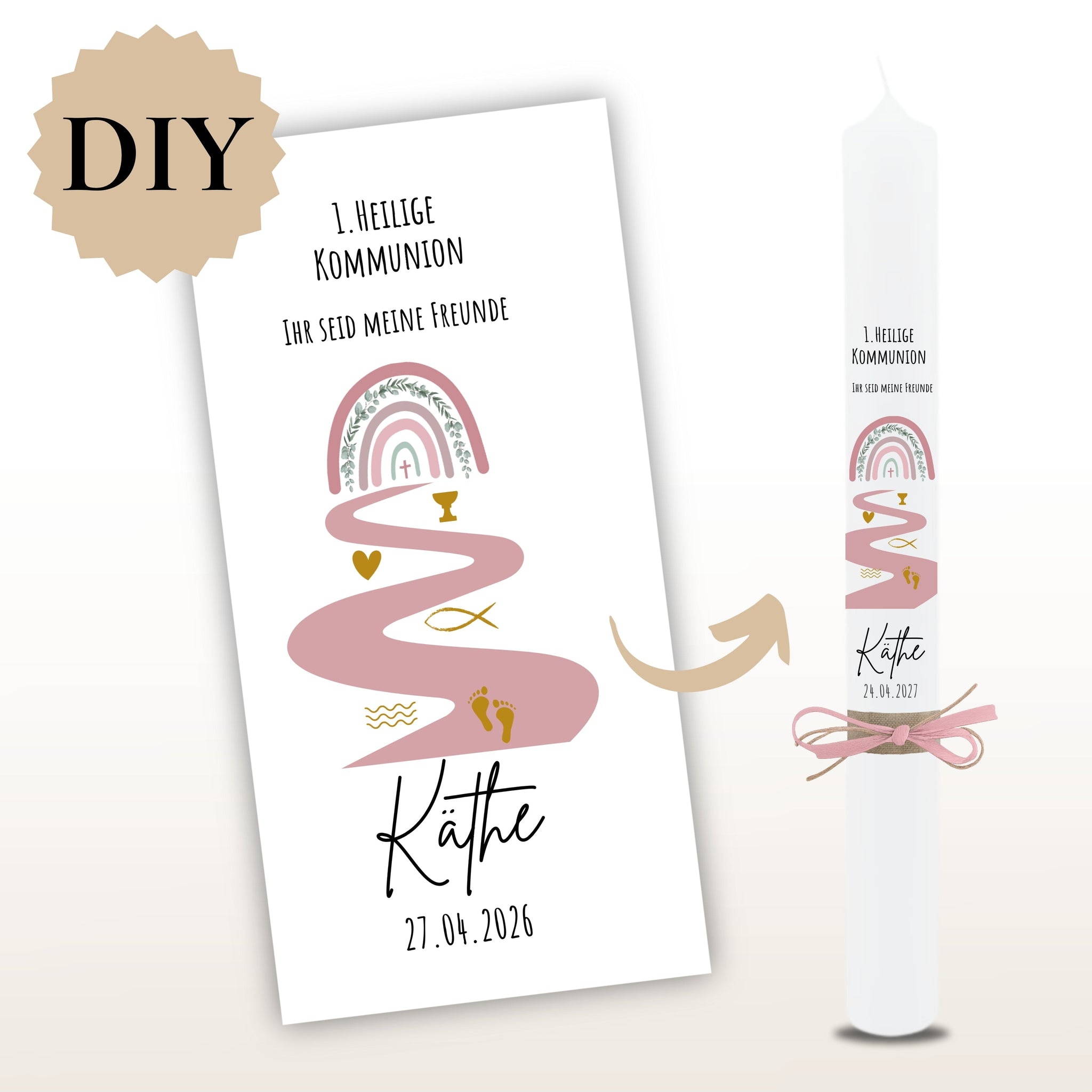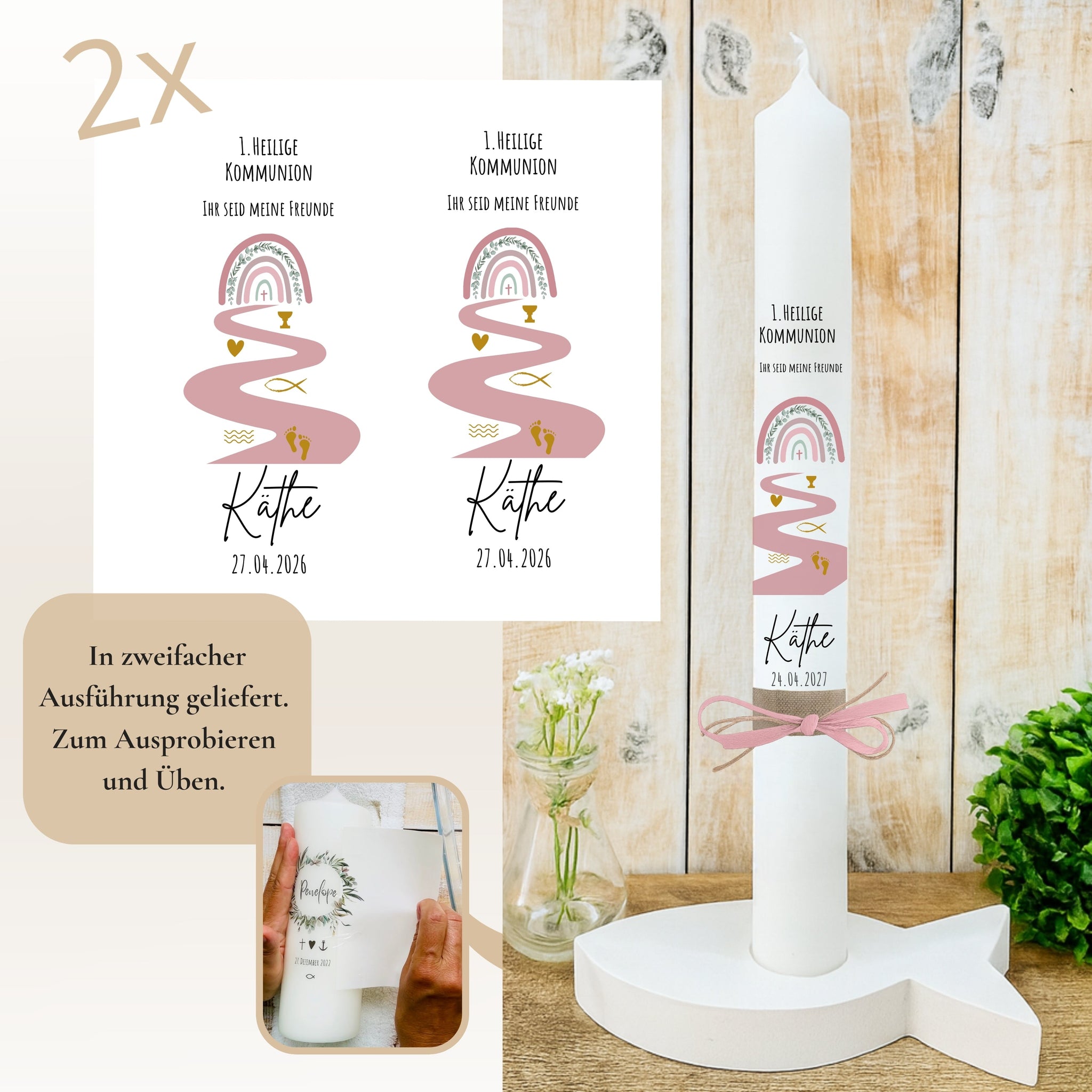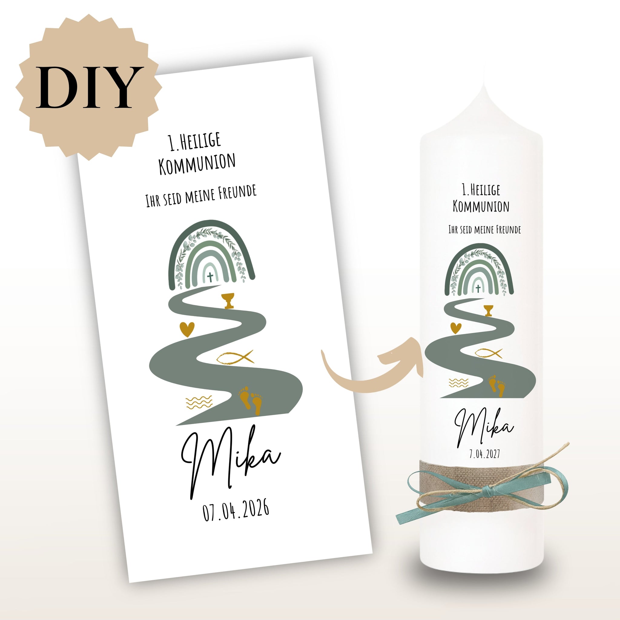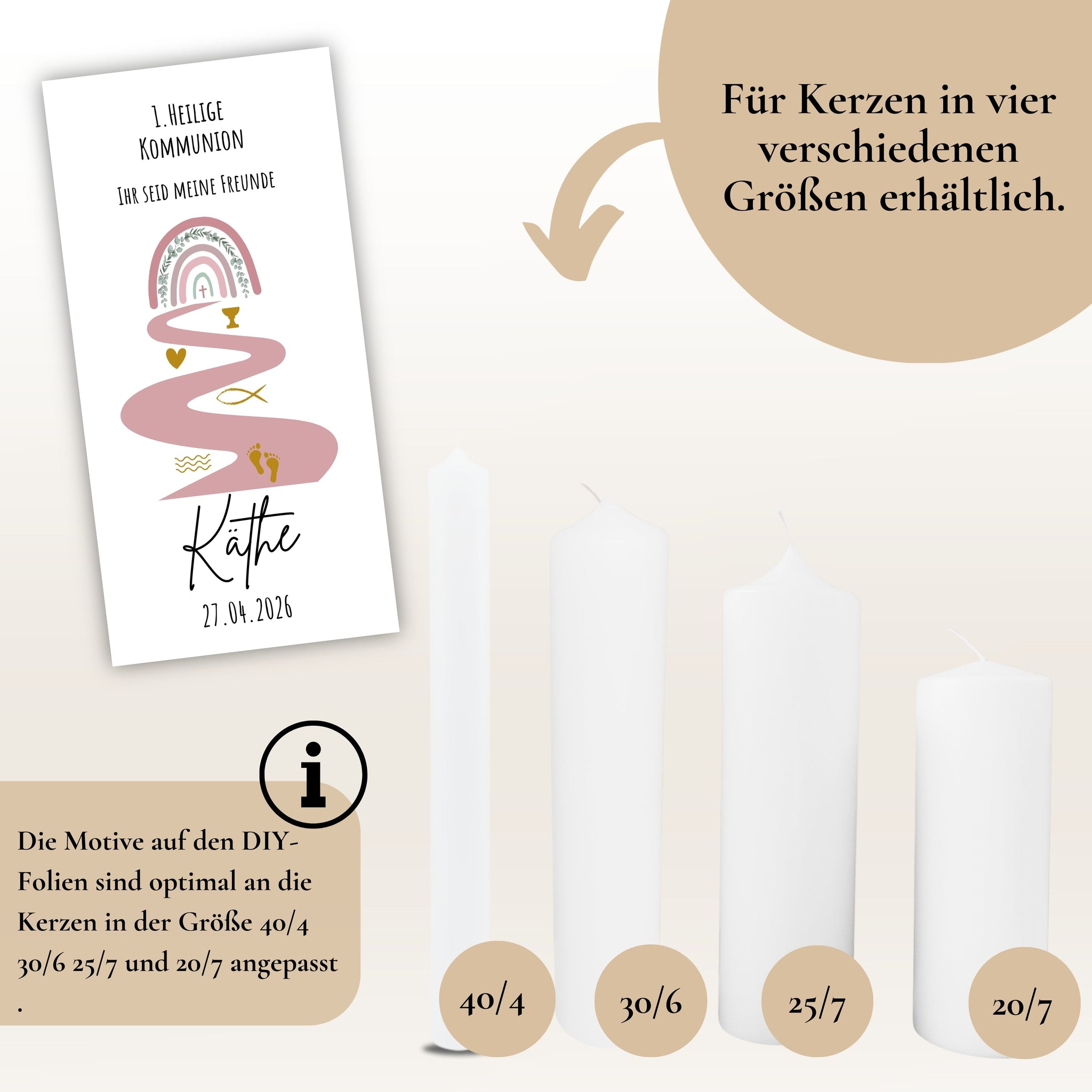 Kerzenfolie Kommunionkerze "Käthe " Eukalyptus Regenbogen - personalisiert