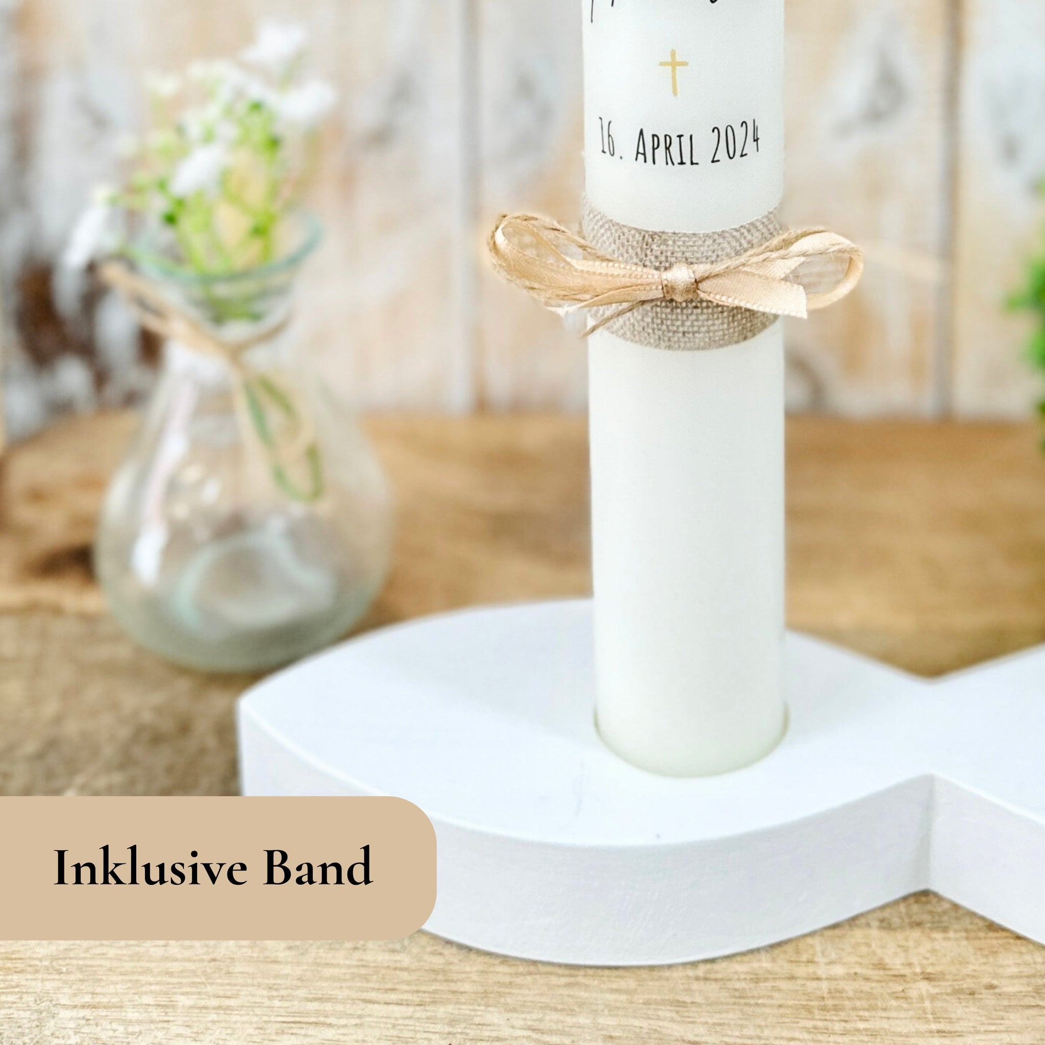 Individuelle und personalisierte Kommunionkerzen und Konfirmationskerzen für Jungen und Mädchen mit ausgefallenen Motiven, sowie passendem Zubehör - minimalistisch und modern.