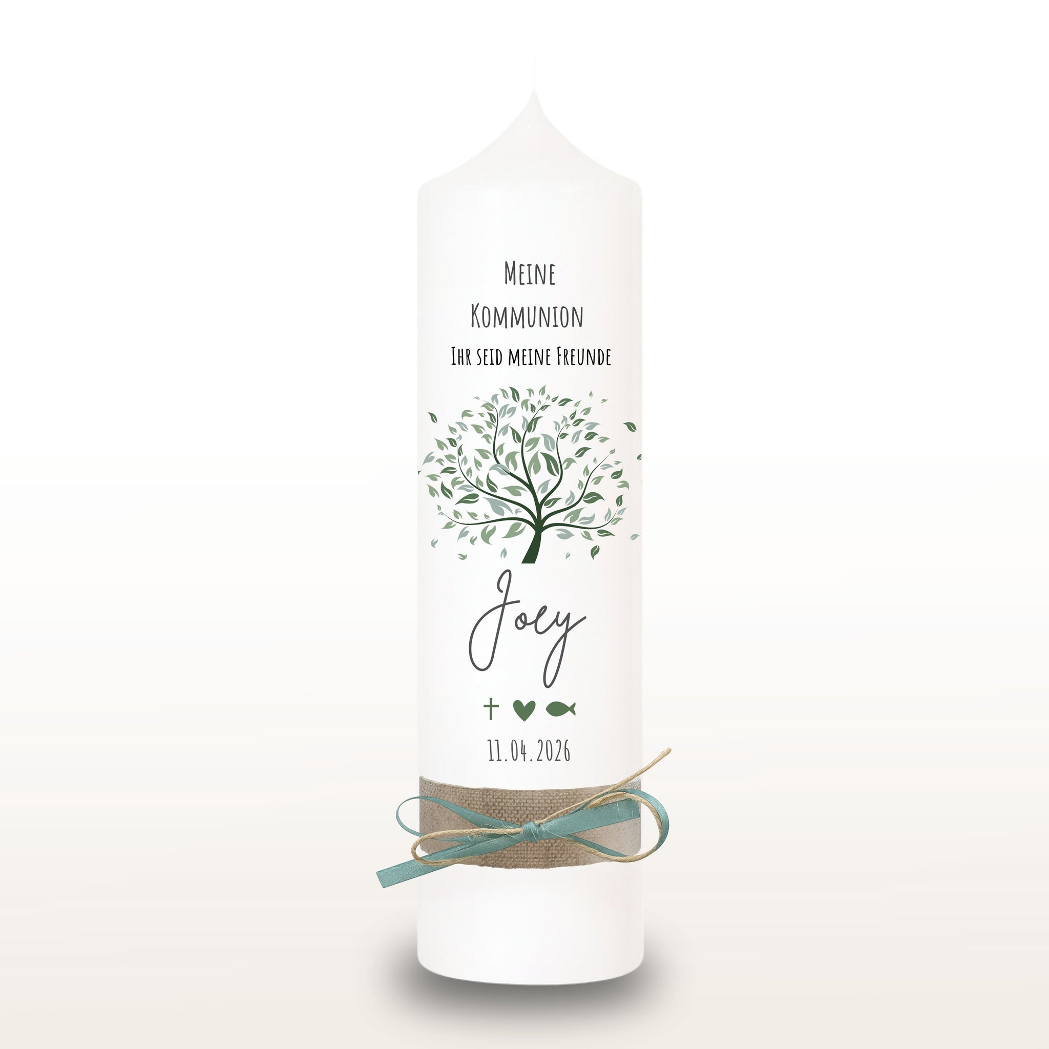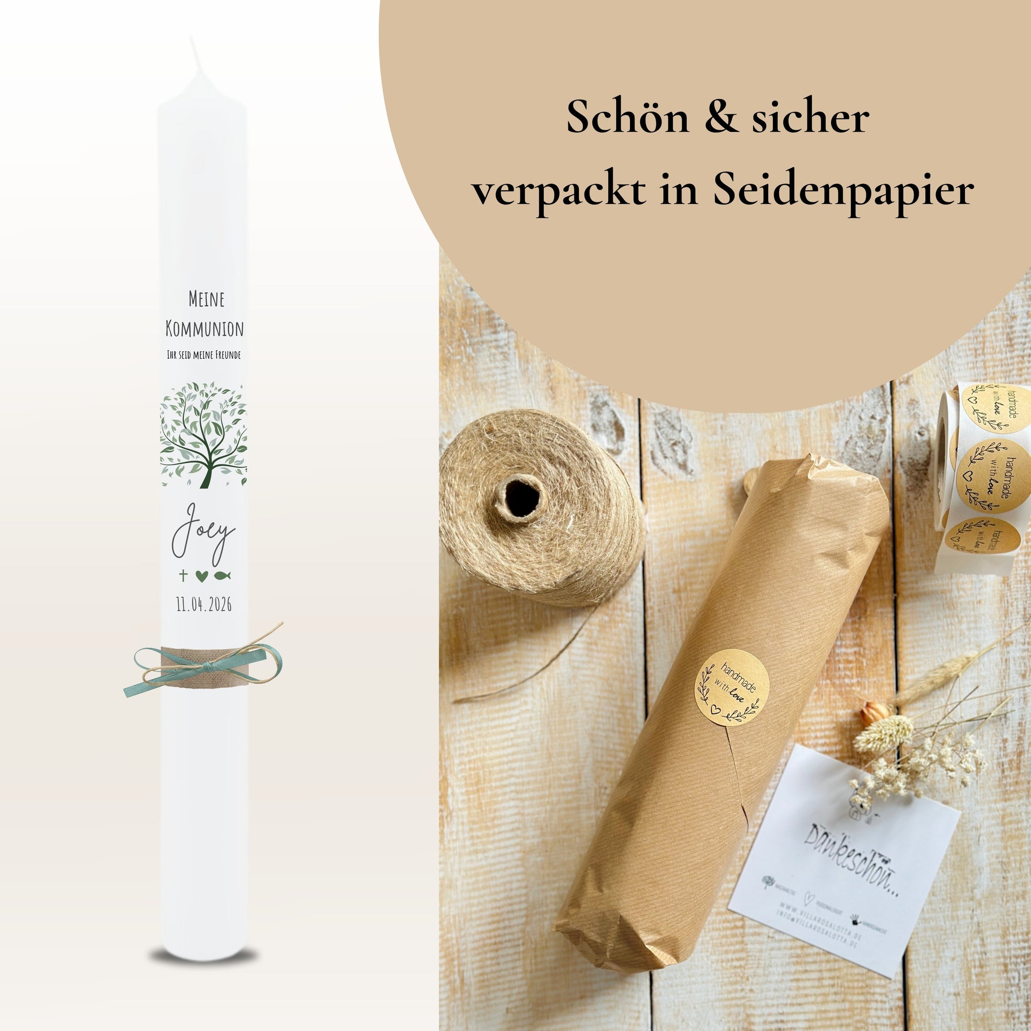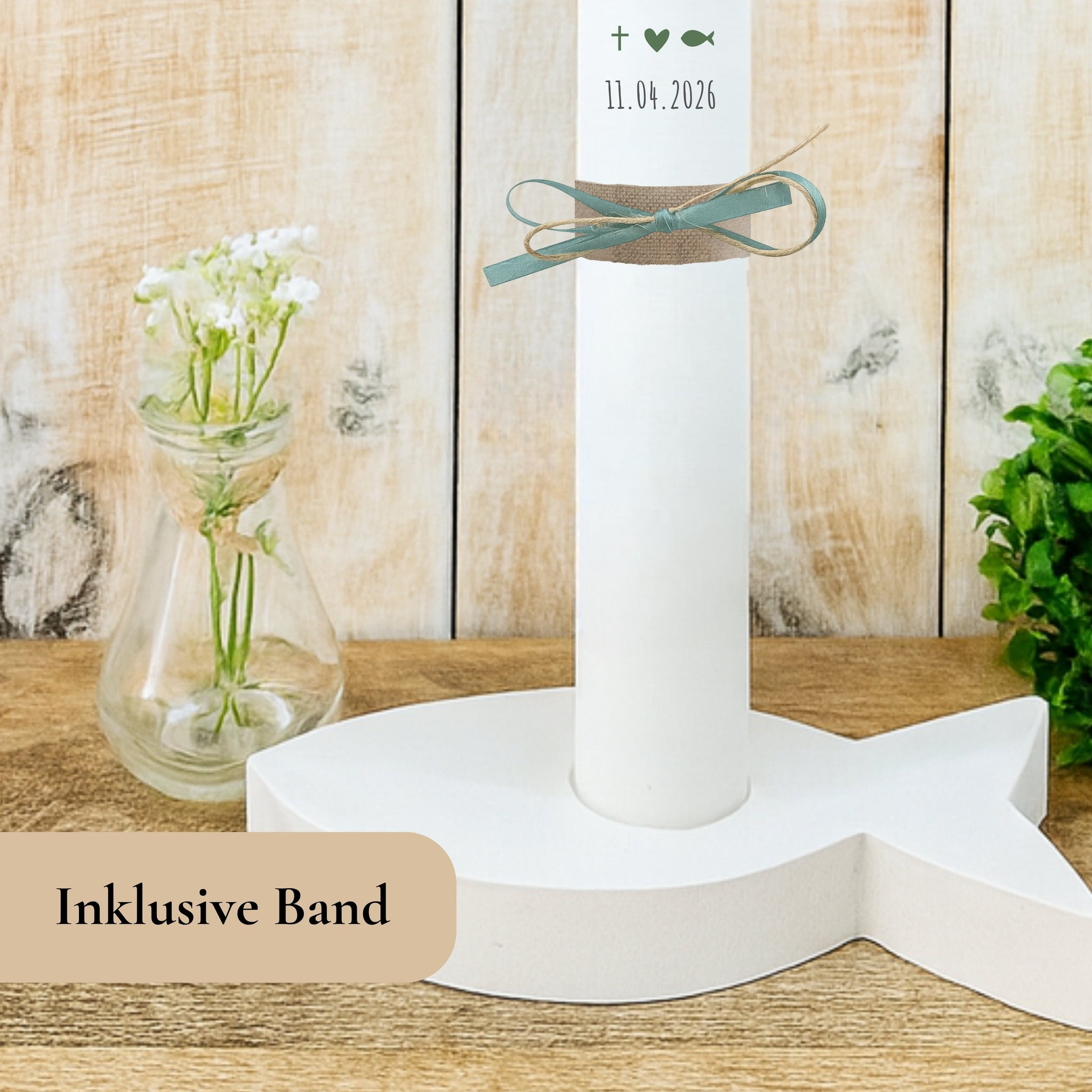 Individuelle und personalisierte Kommunionkerzen und Konfirmationskerzen für Jungen und Mädchen mit ausgefallenen Motiven, sowie passendem Zubehör - minimalistisch und modern.