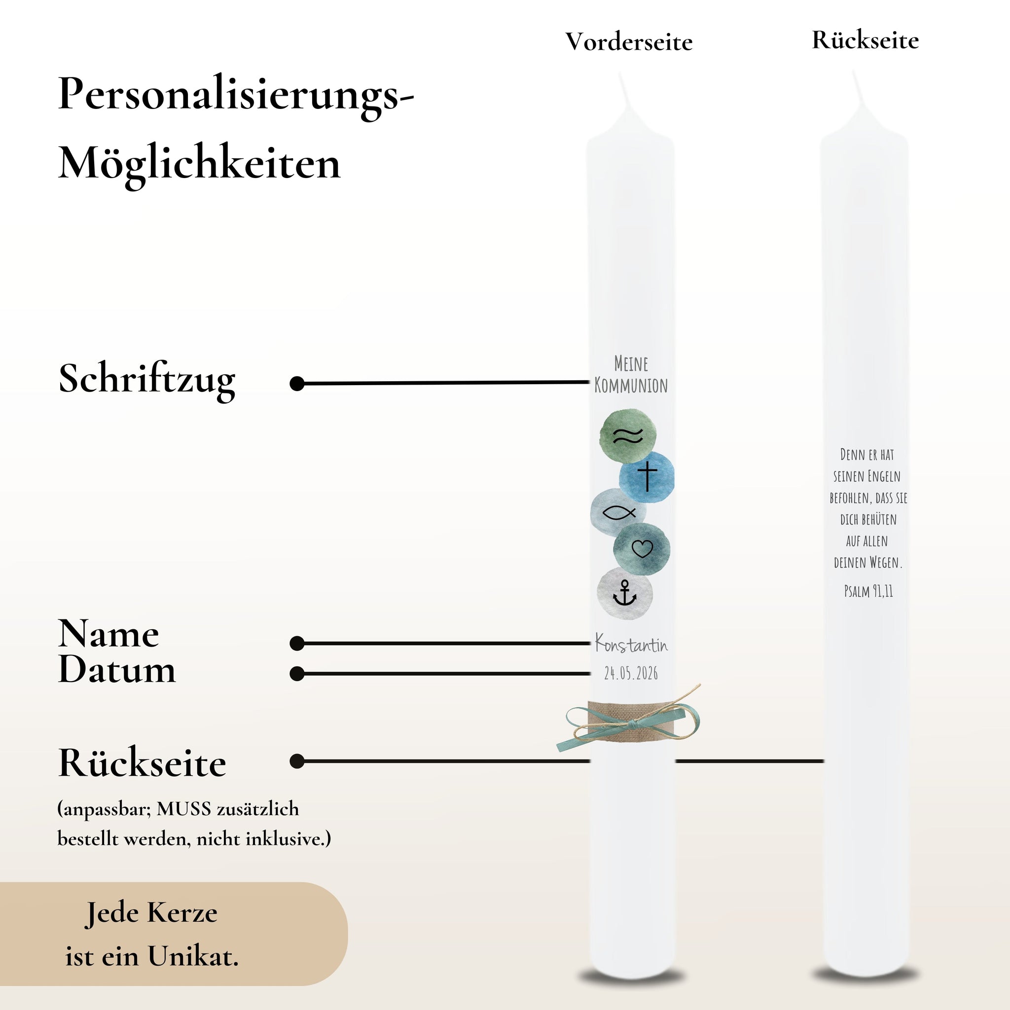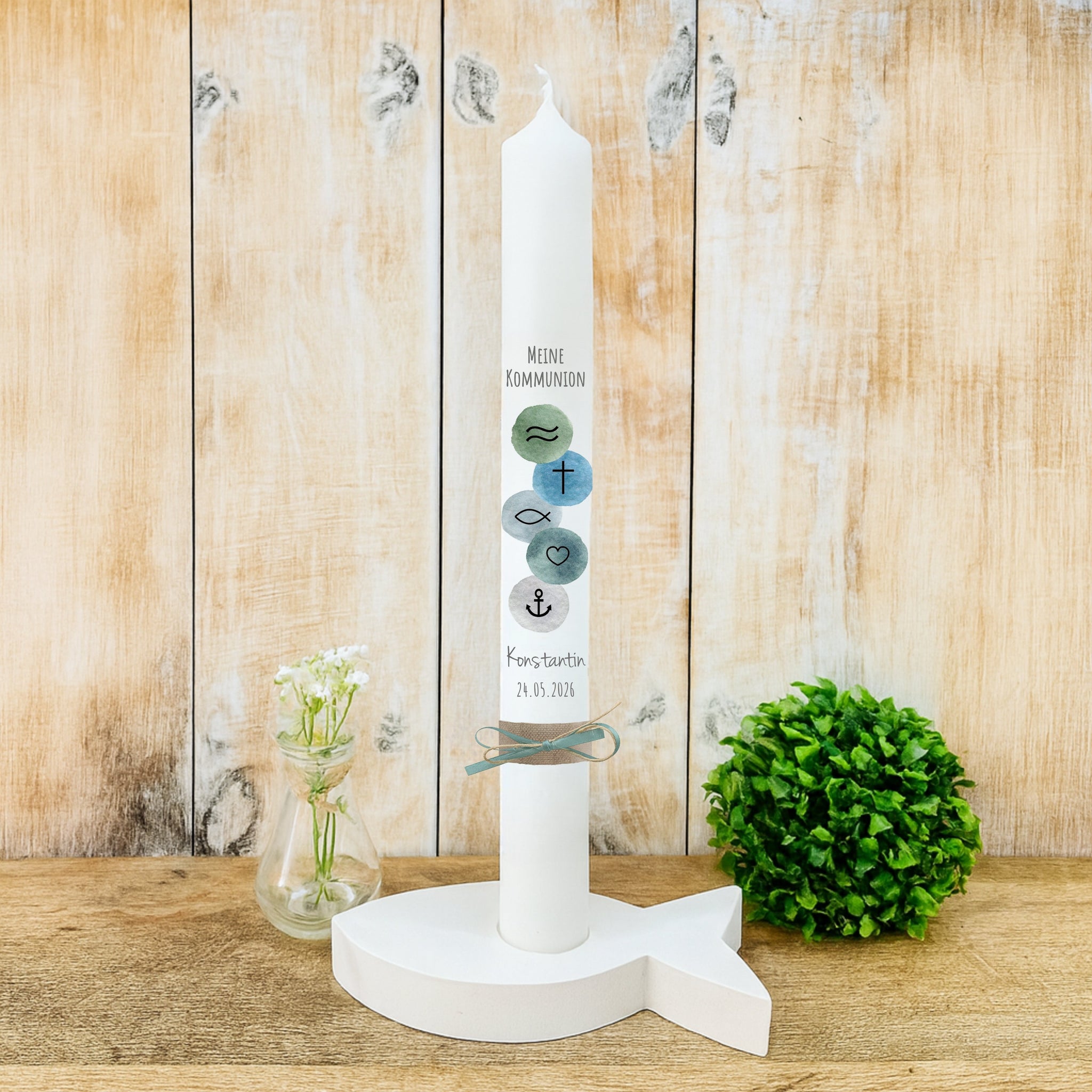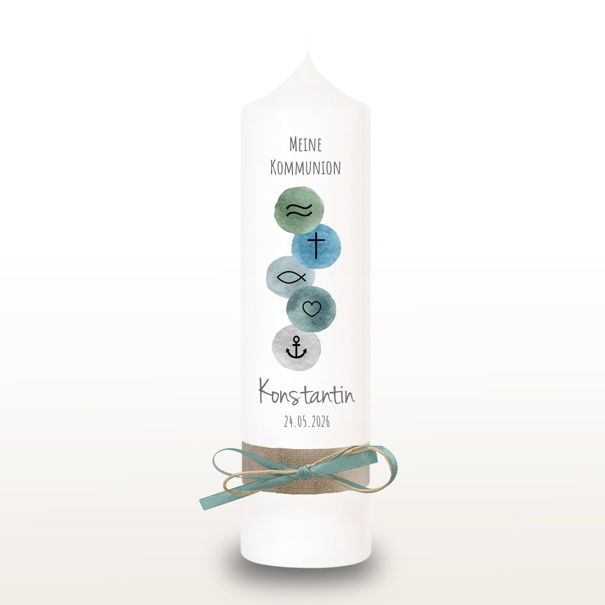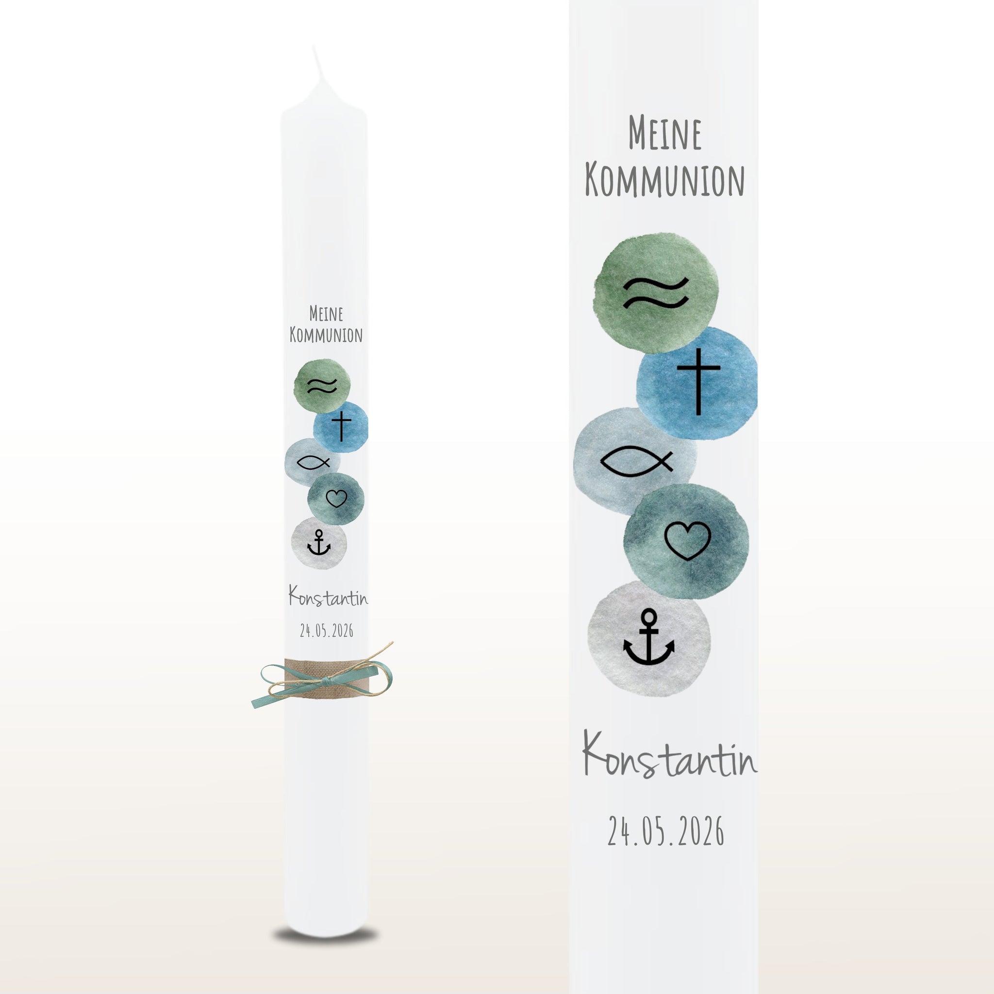 Kommunionkerze "Konstantin" christliche Symbole - personalisiert