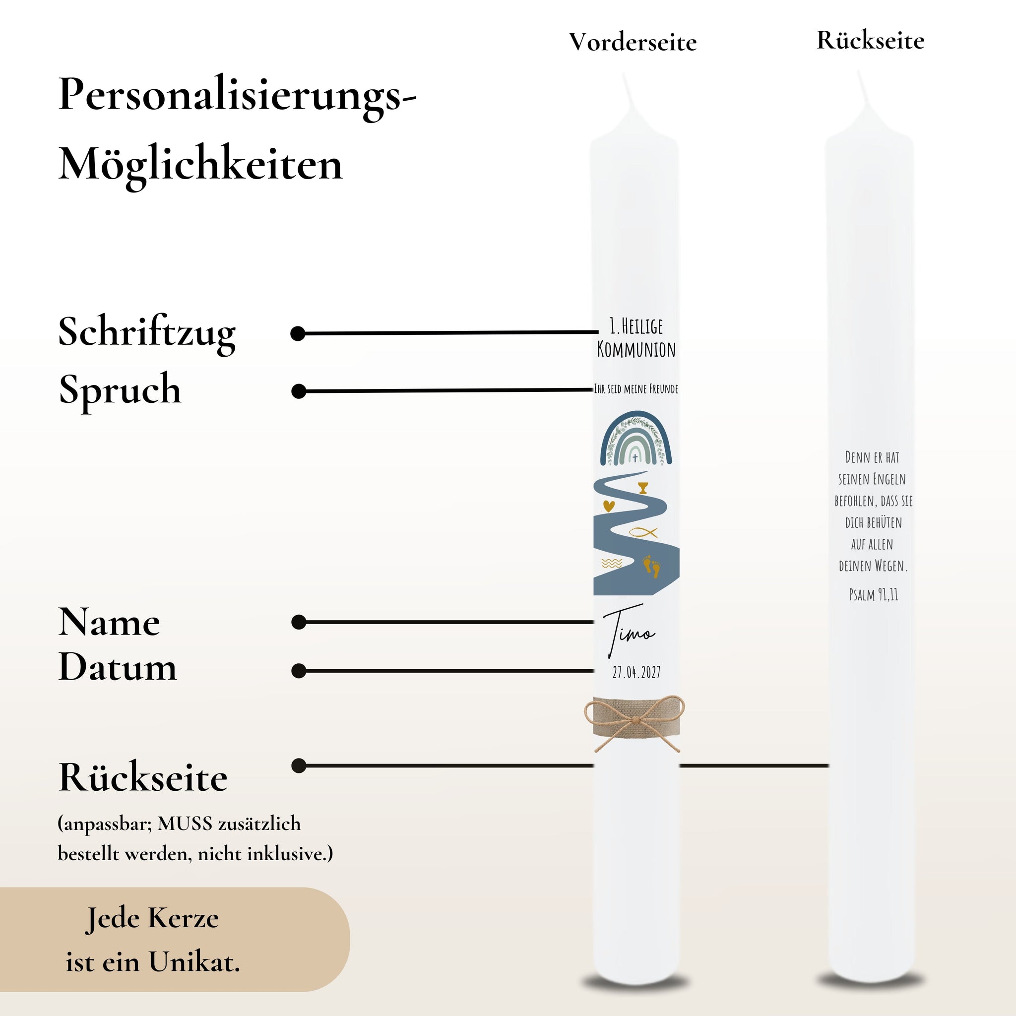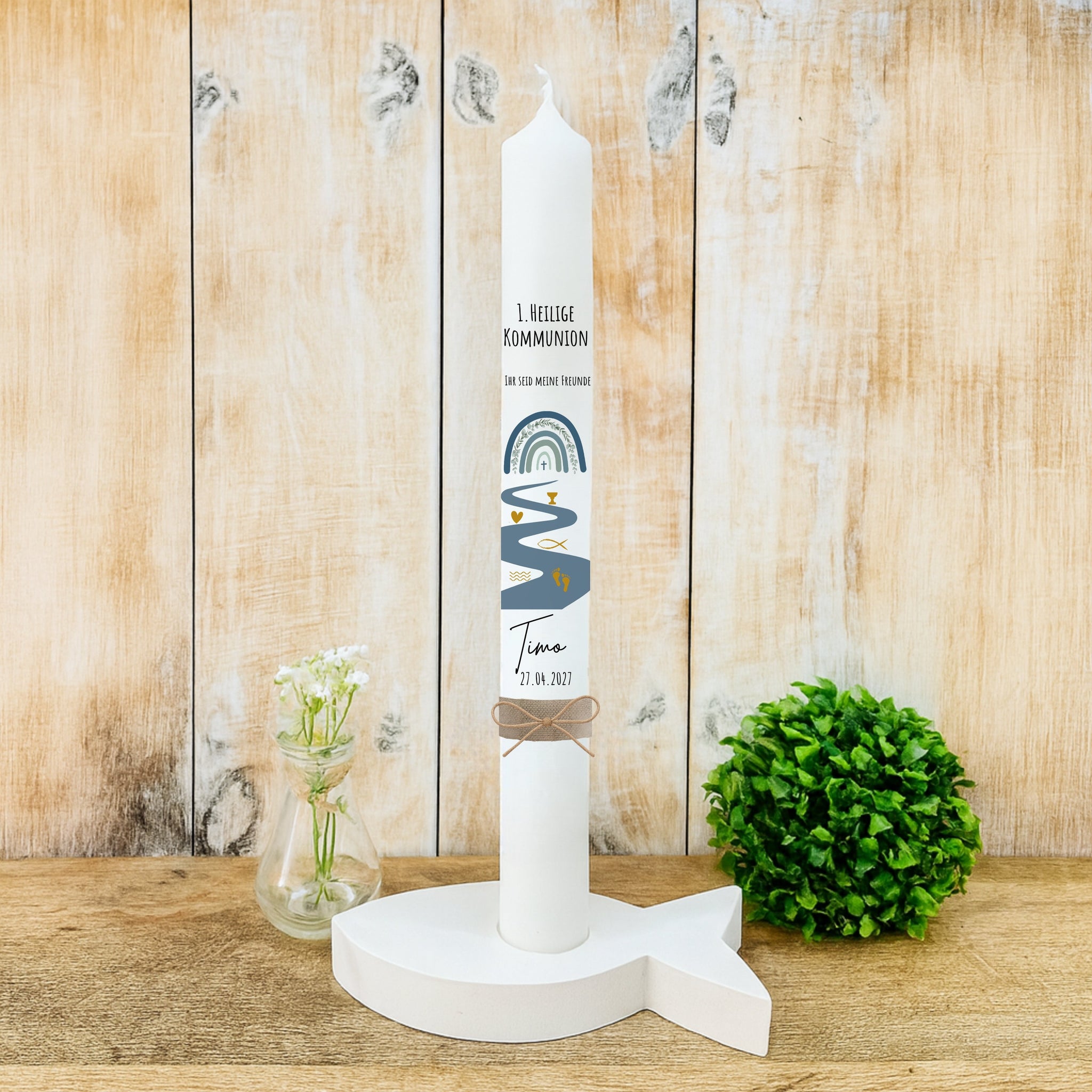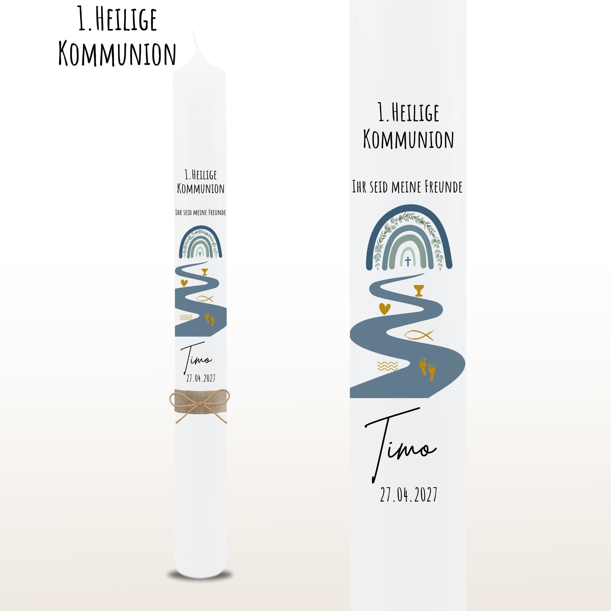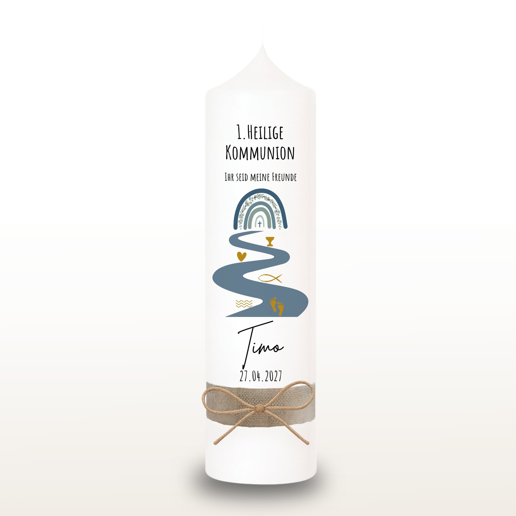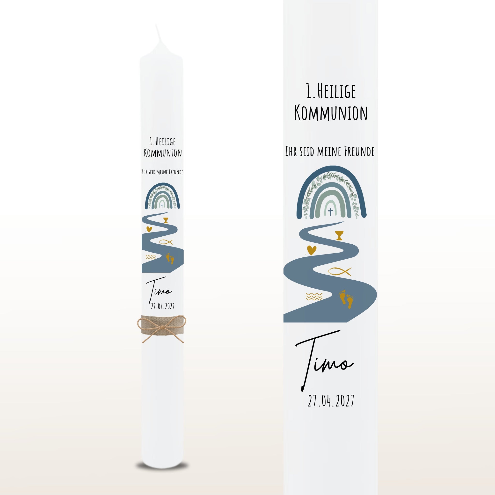 Kommunionkerze "Timo " Eukalyptus Regenbogen - personalisiert