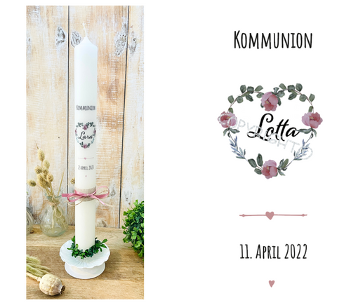 Kommunionkerze "Charlotte" Herzenskranz - personalisiert