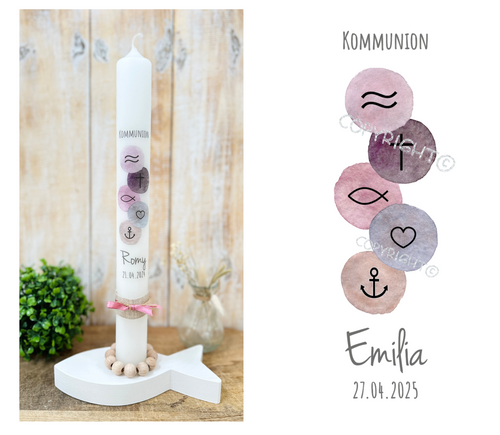 Kommunionkerze "Emilia" christliche Symbole - personalisiert