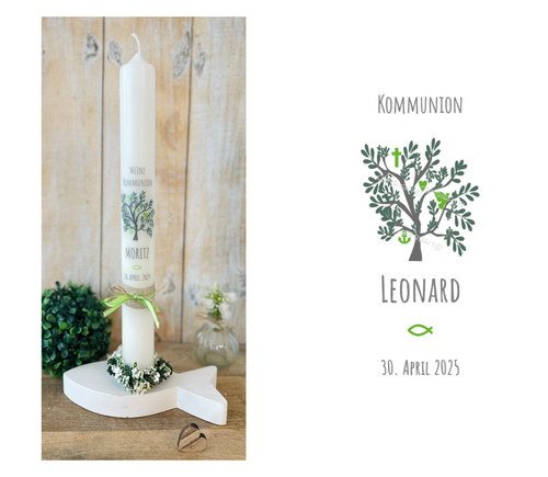 Kommunionkerze Lebensbaum "Leon" - personalisiert