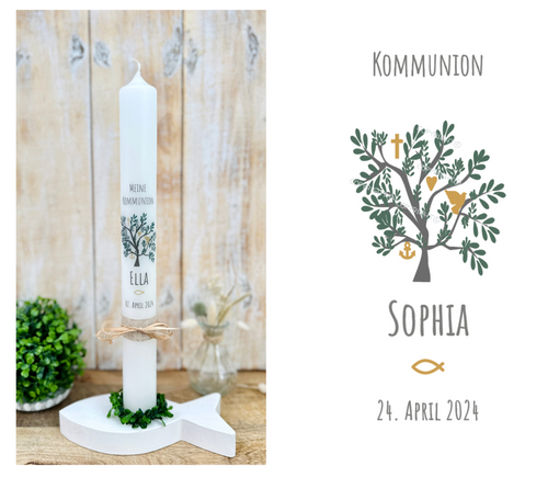 Kommunionkerze "Mia" Lebensbaum - personalisiert