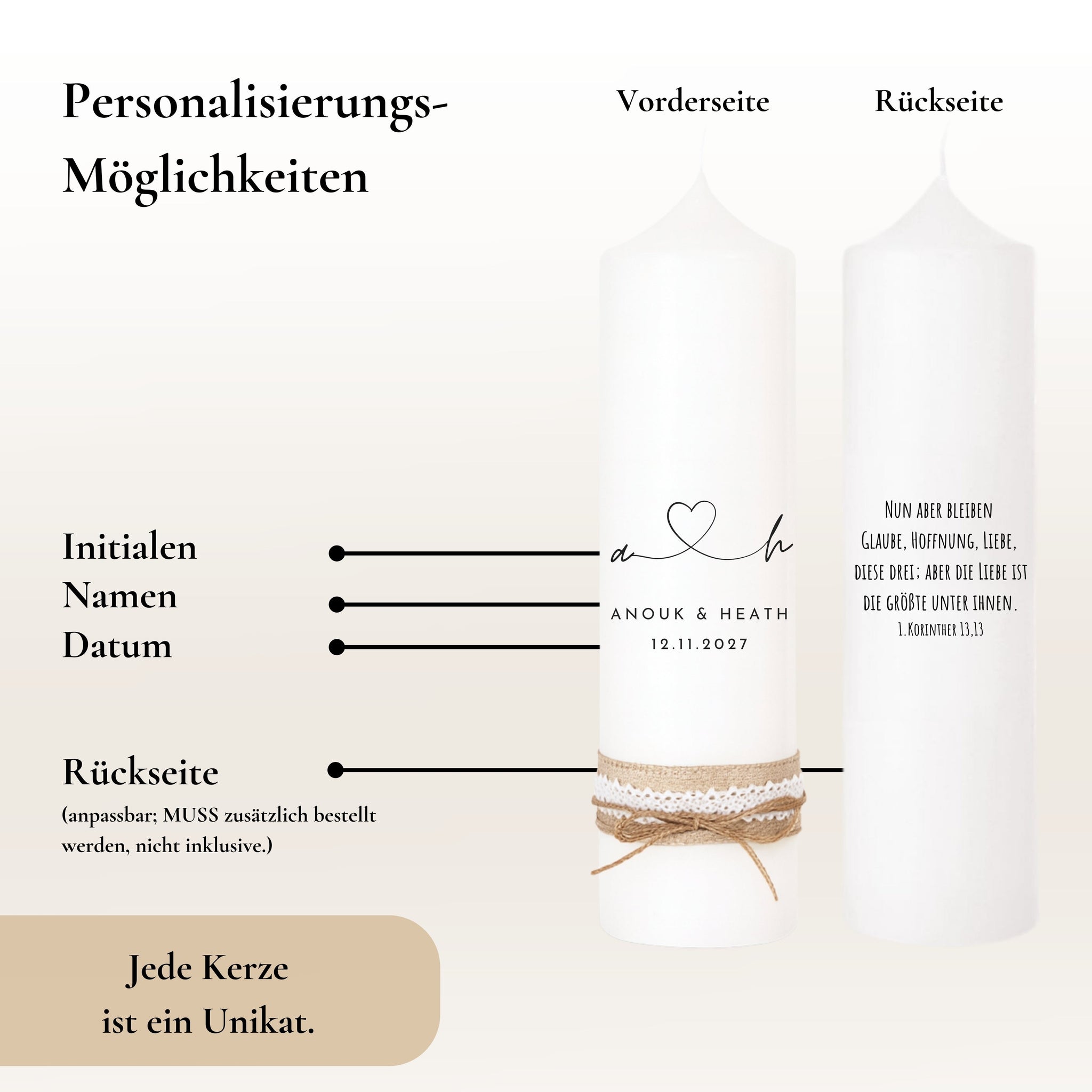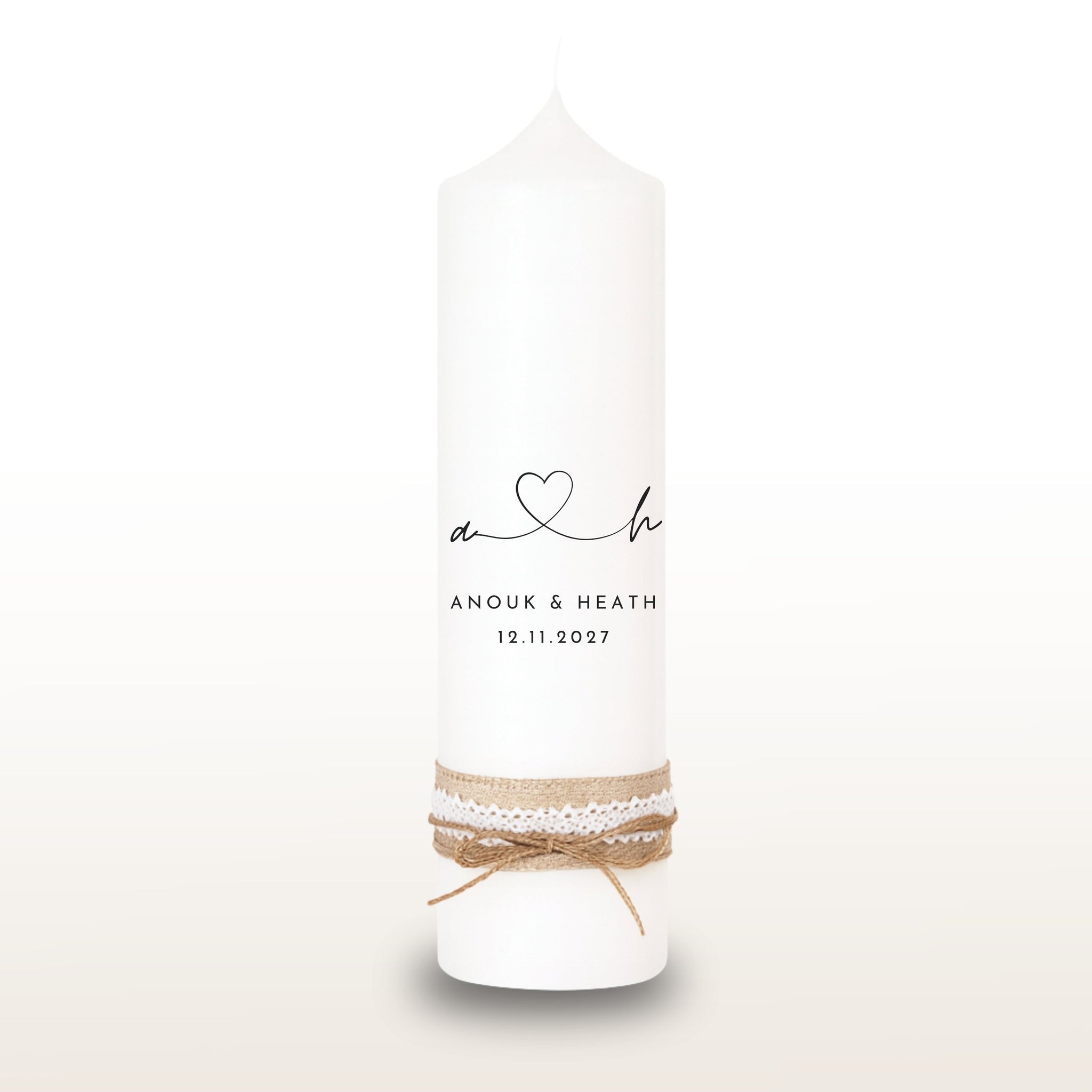 Hochzeitskerze "Anouk - verbundenes Herz " Initialen Fine line - personalisiert