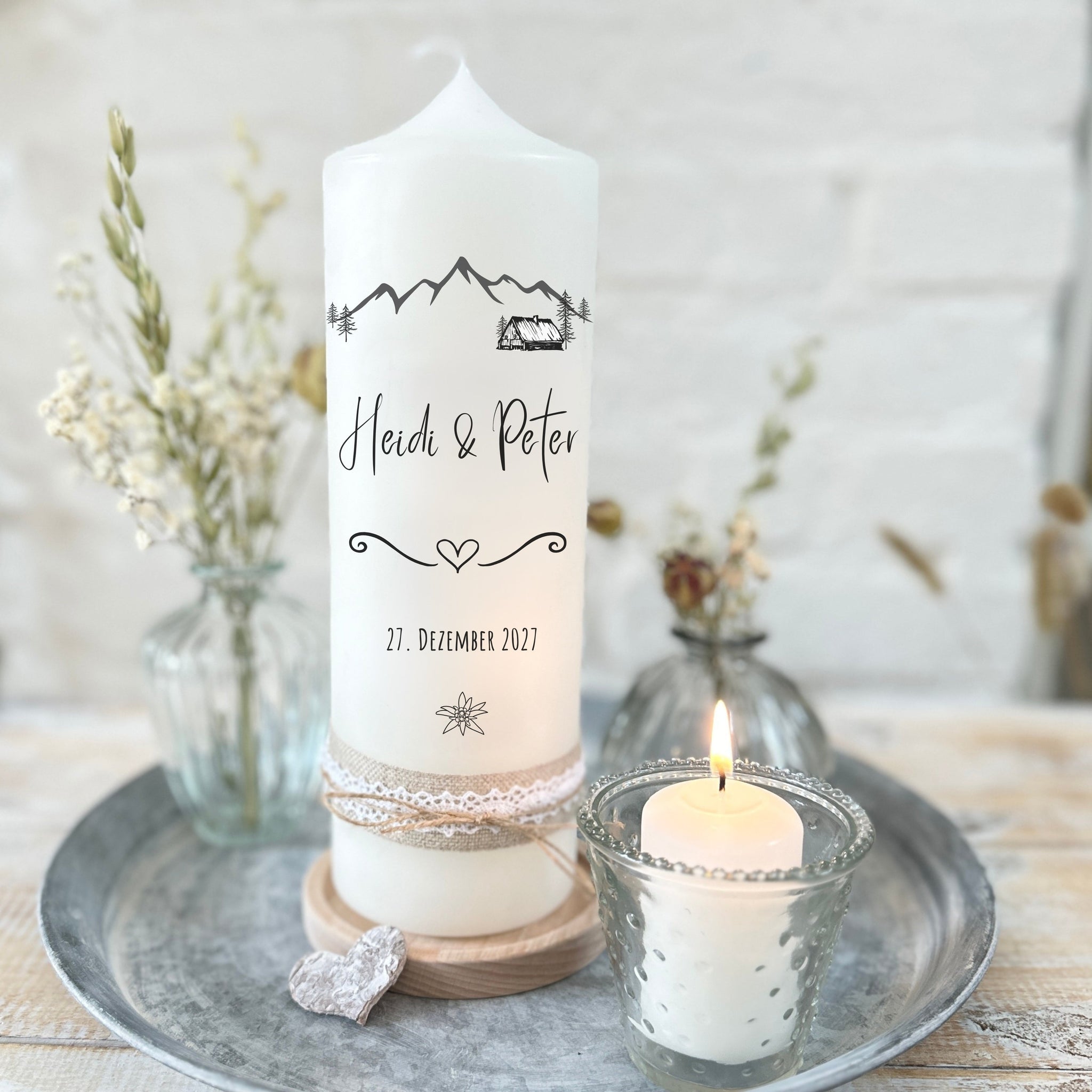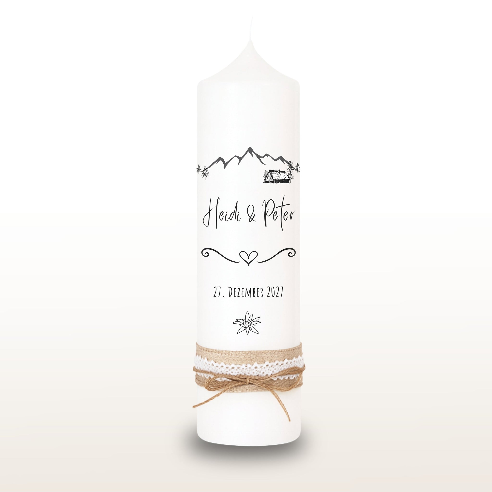 Hochzeitskerze "Heidi" Berghochzeit Berge schwarz - personalisiert