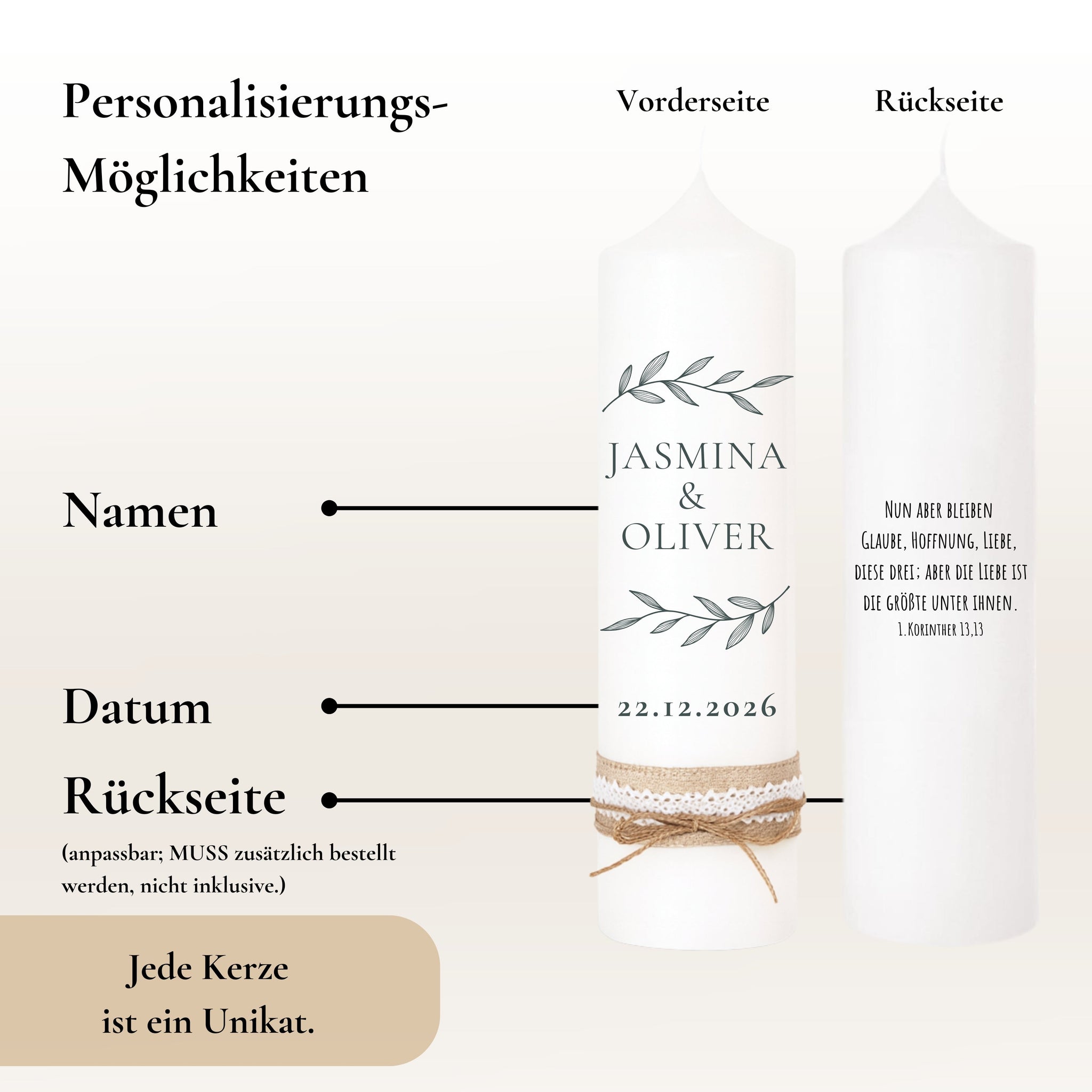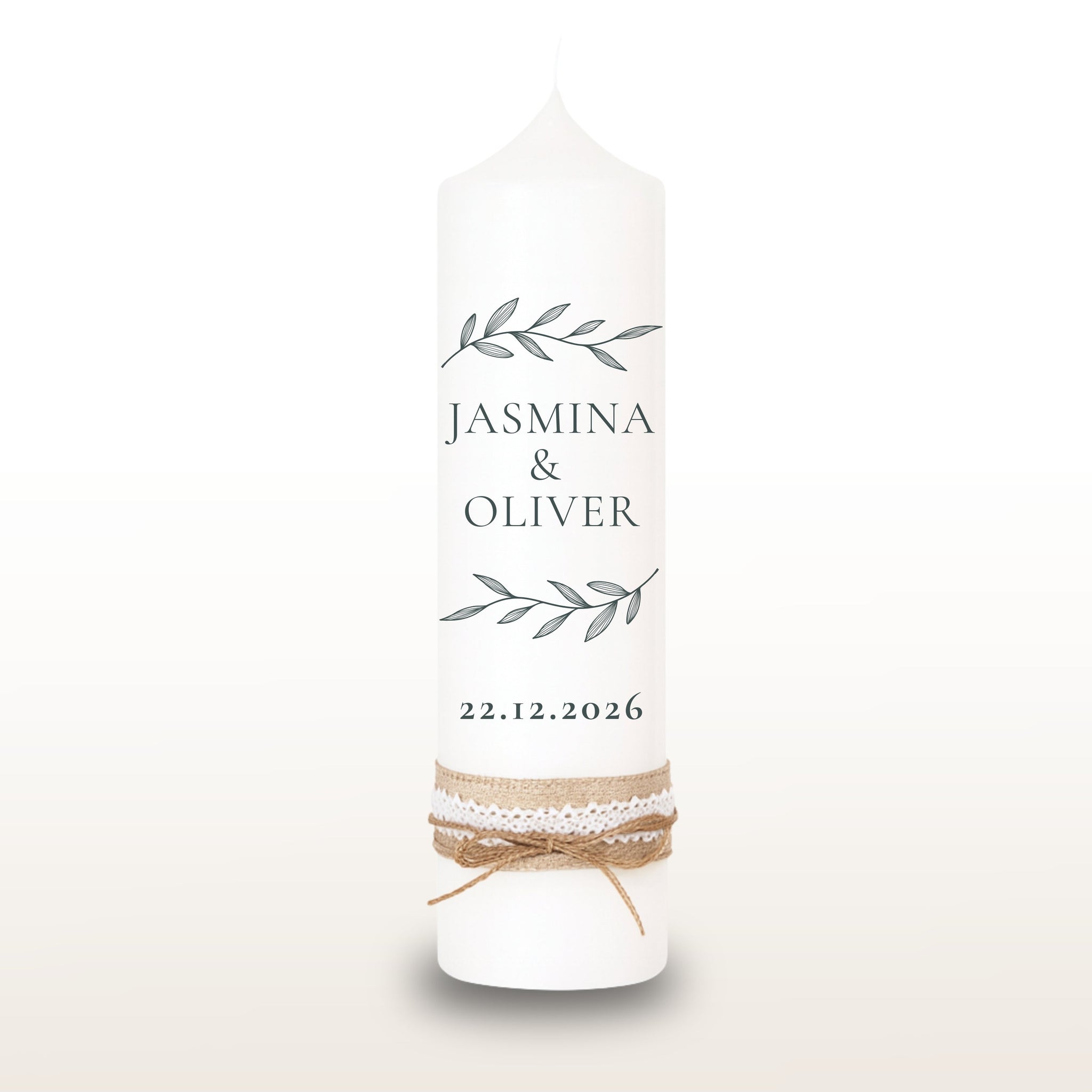 Hochzeitskerze "Jasmina" Olivenzweige - personalisiert