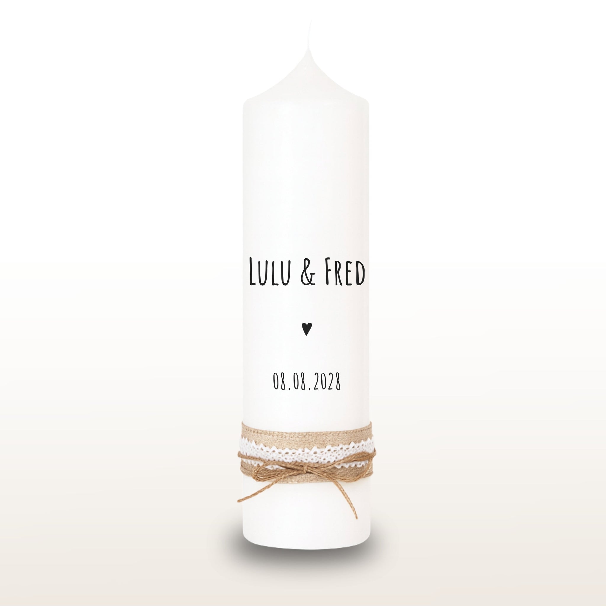 Hochzeitskerze "Lulu" Namen Herz minimalistisch - personalisiert