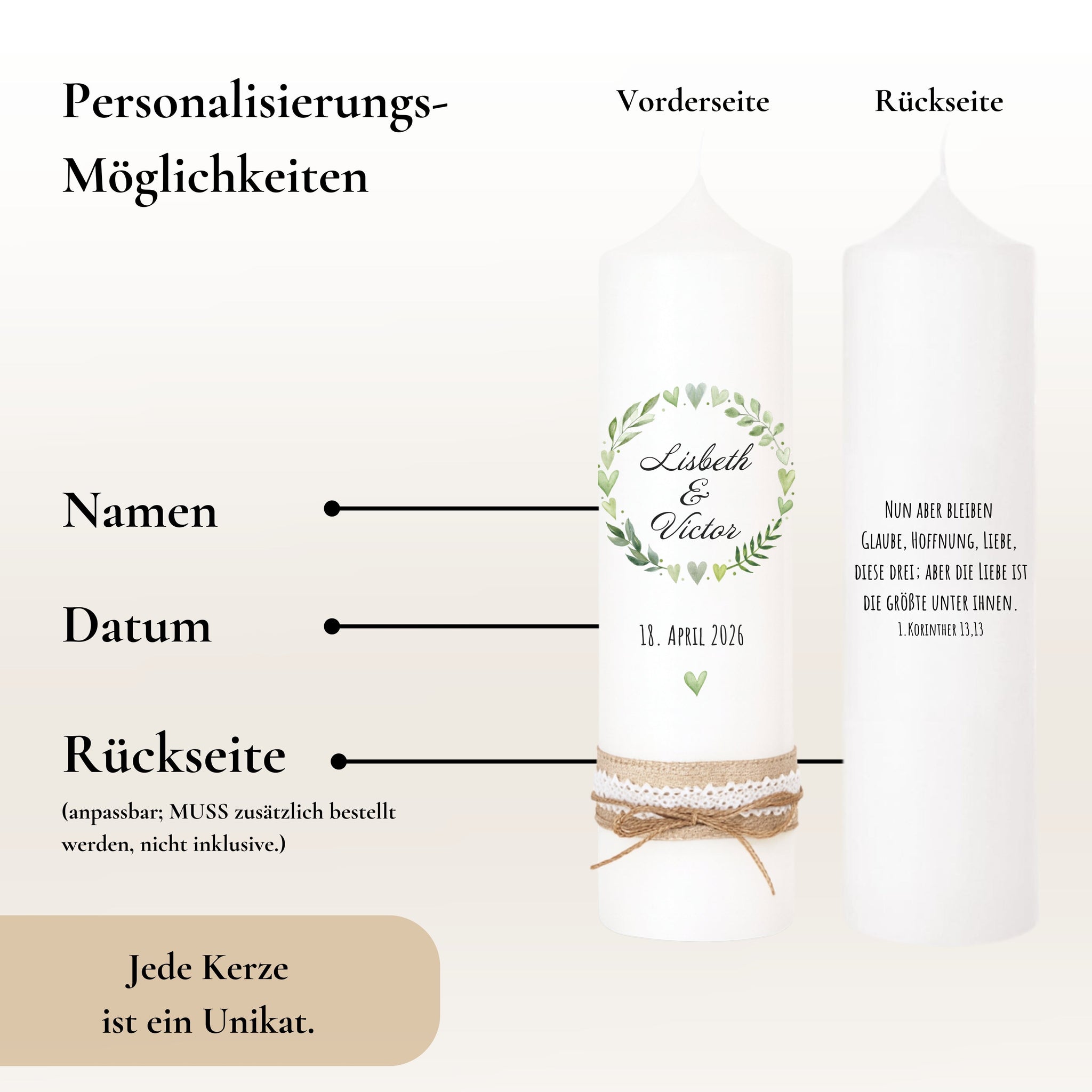 Hochzeitskerze "Malina" Kalligrafie - personalisiert