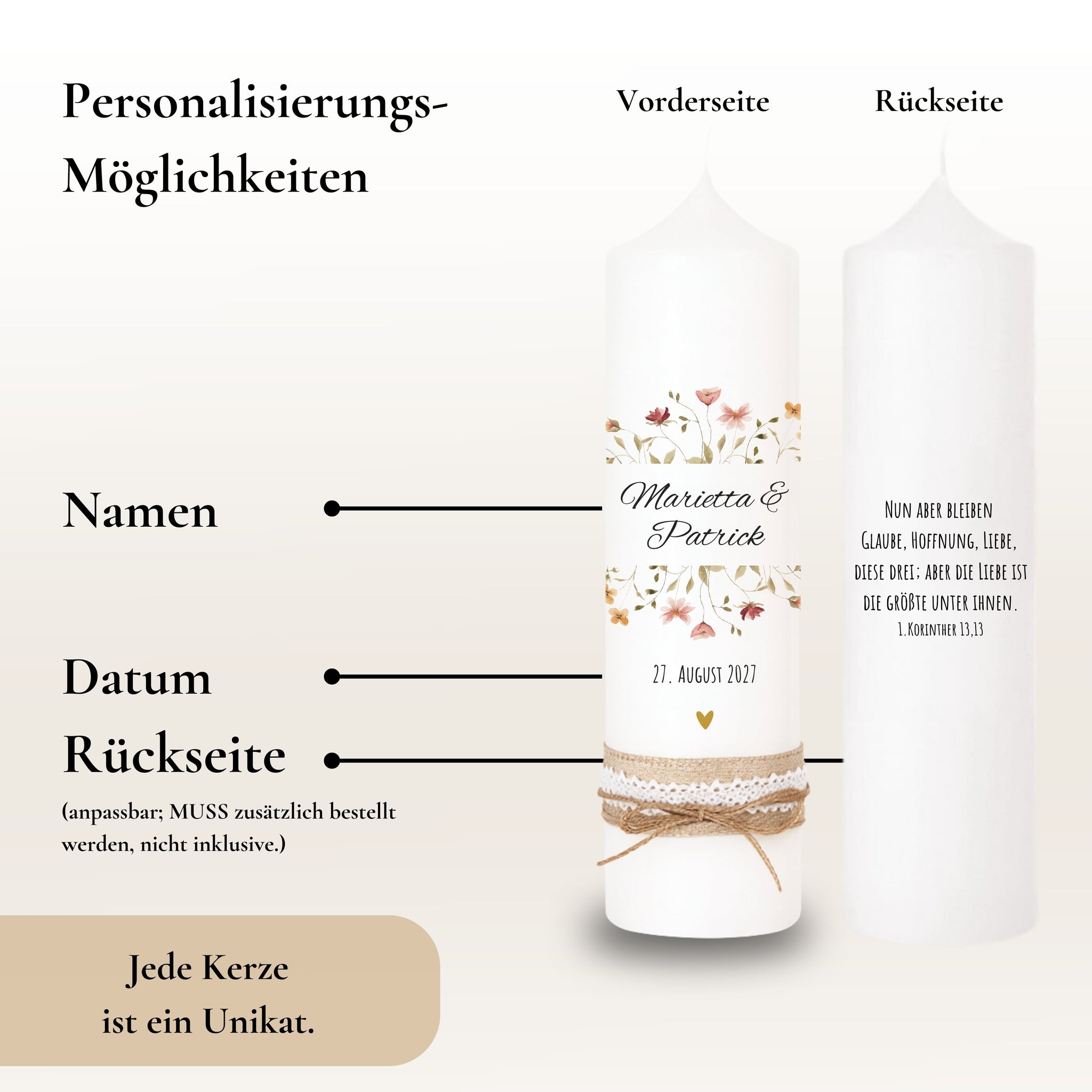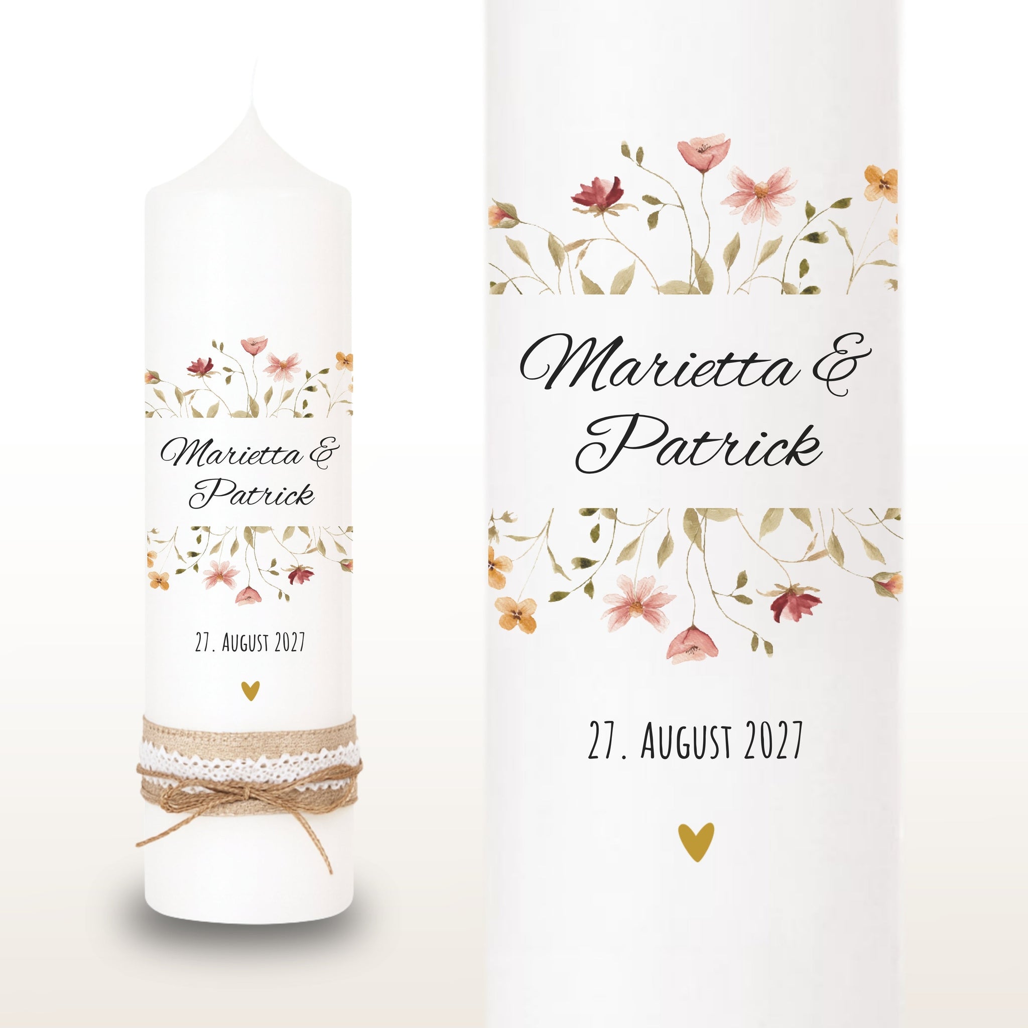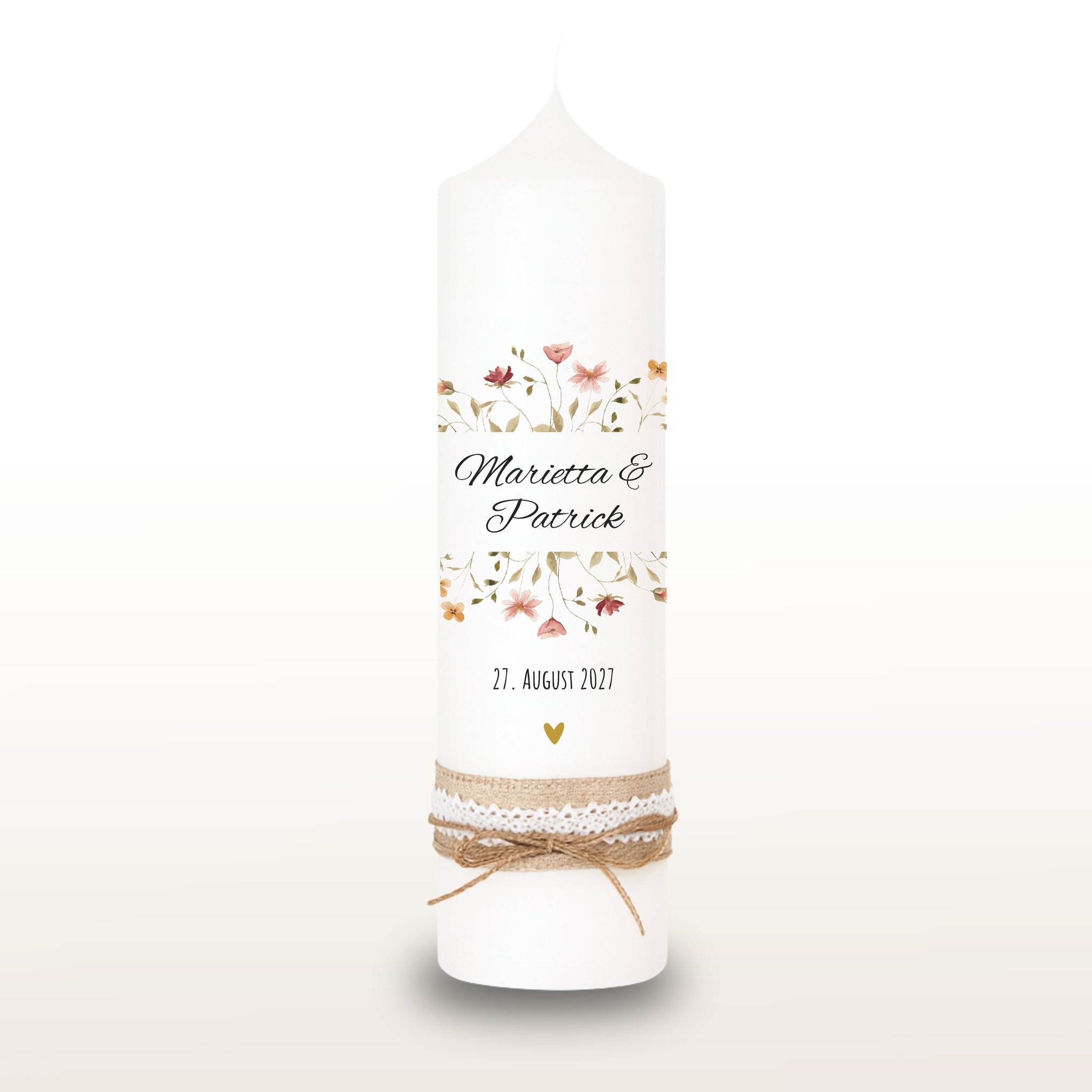 Hochzeitskerze "Marietta" Blumenkranz Kranz altrosa - personalisiert