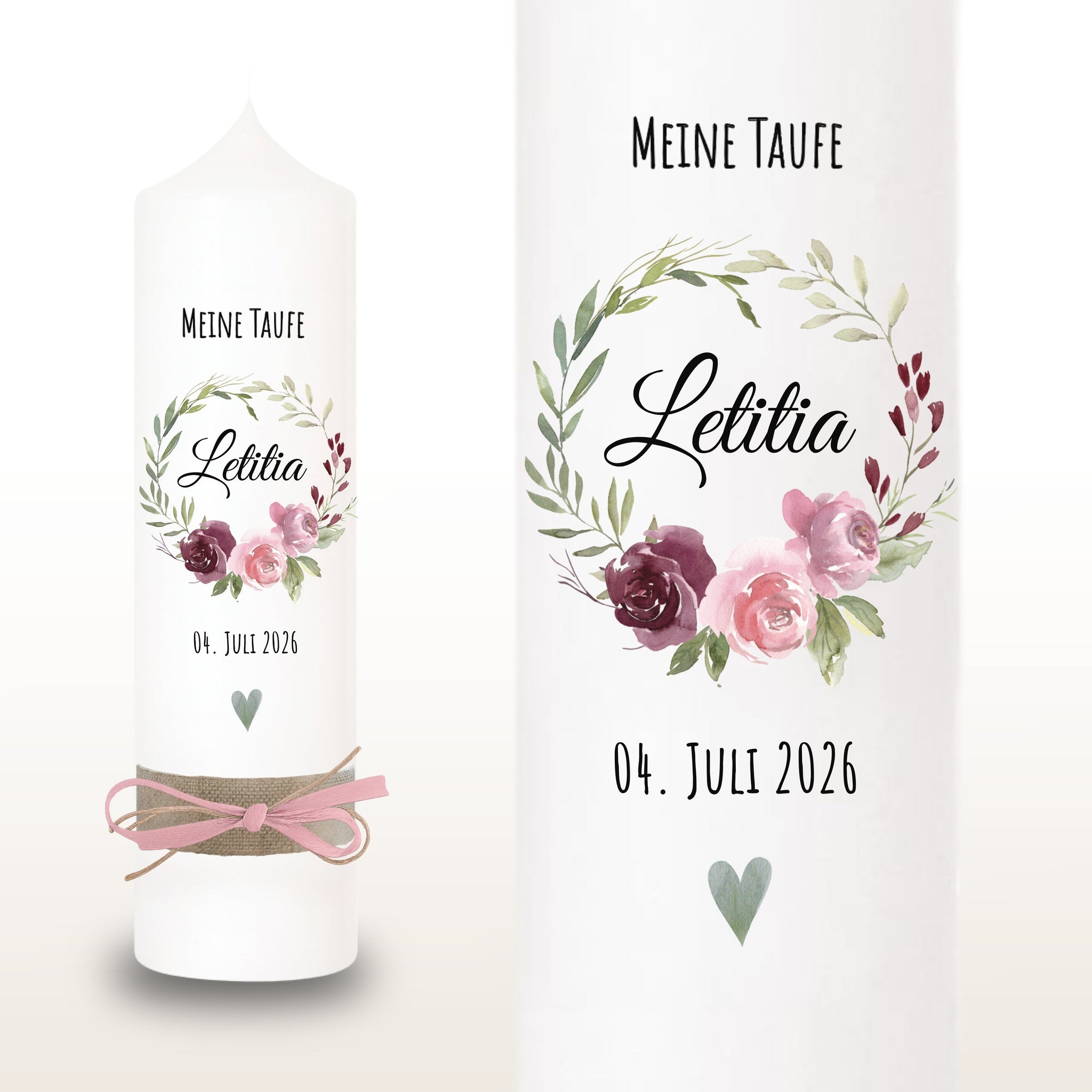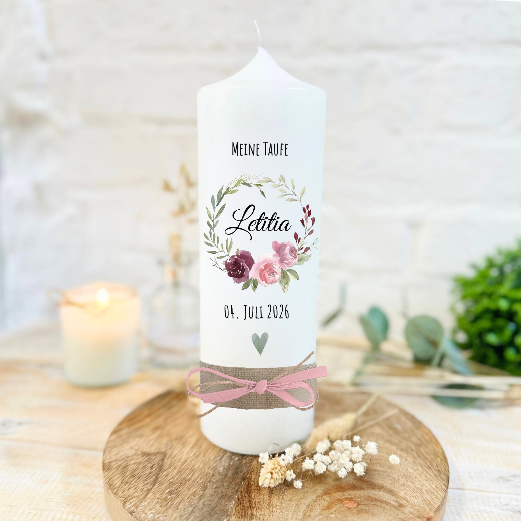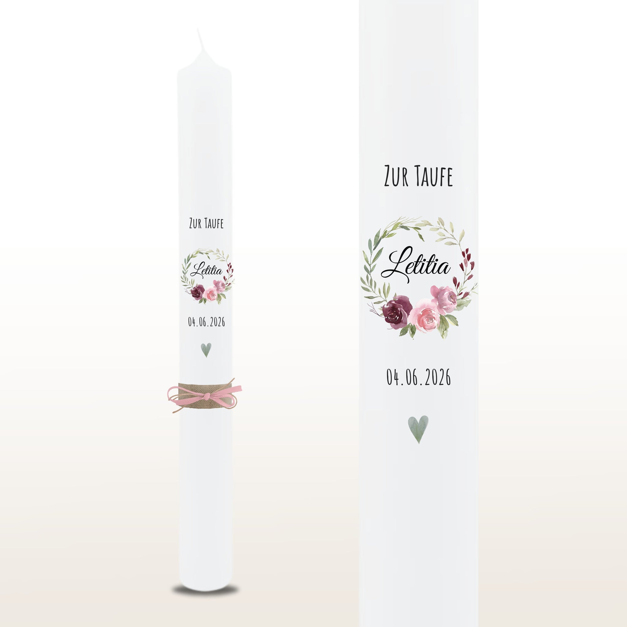 • Lade das Bild in den Galerie-Viewer, Taufkerze "Letitia" Blumen - personalisiert