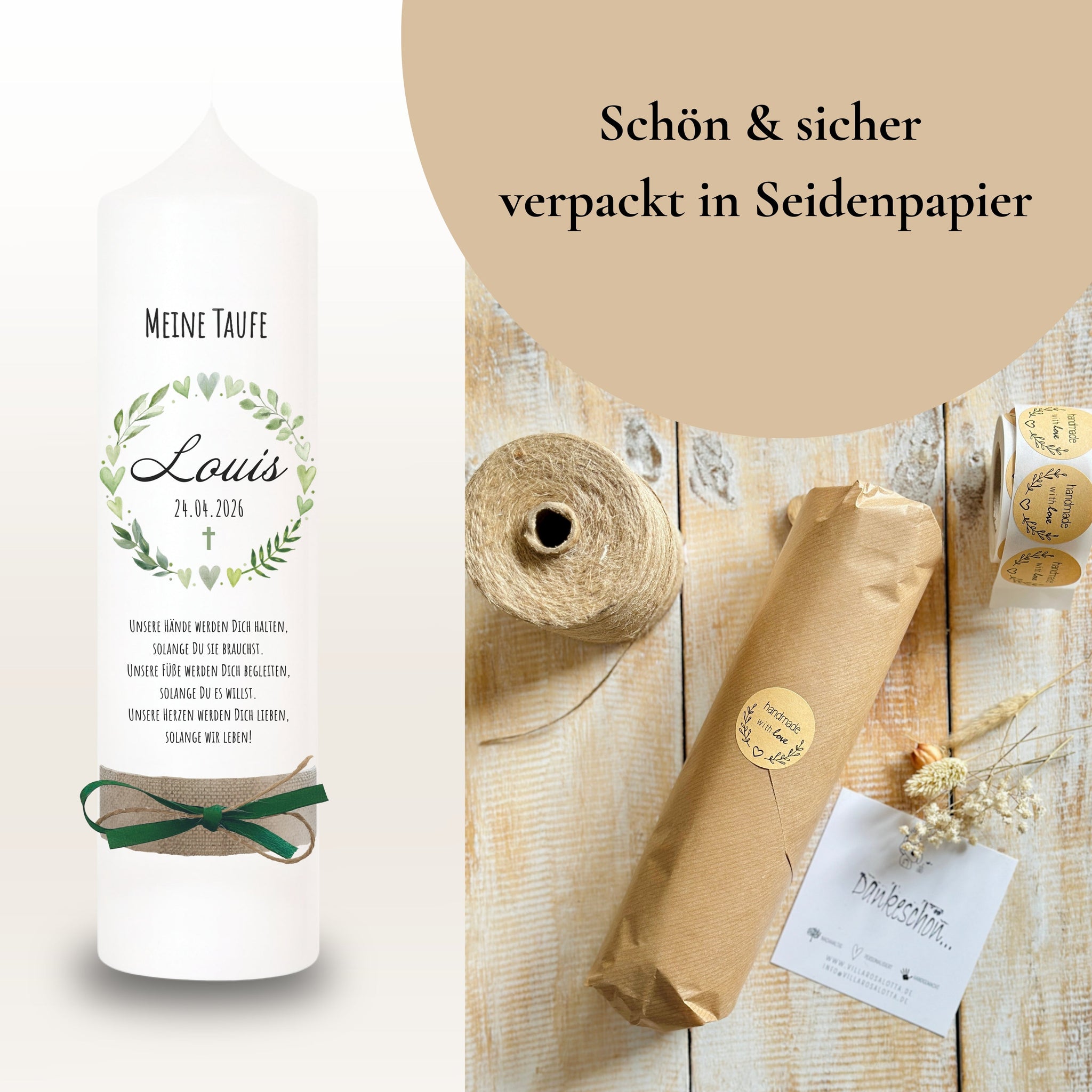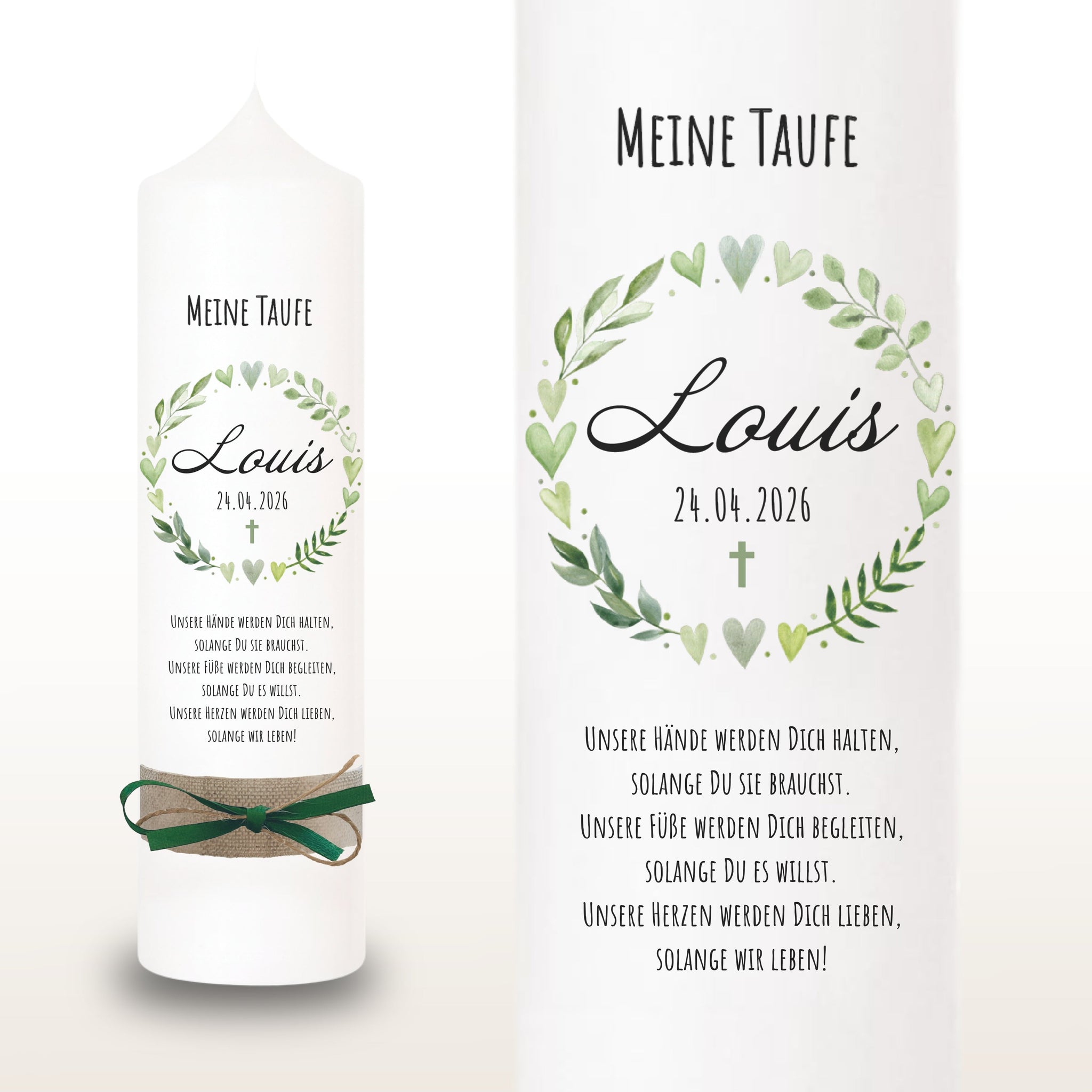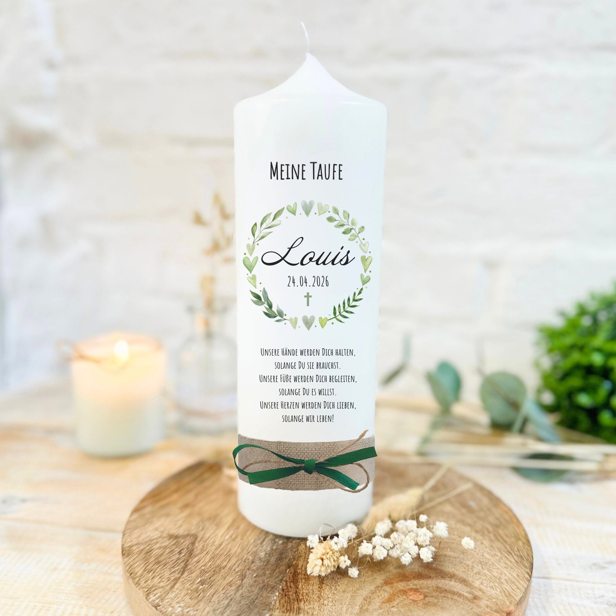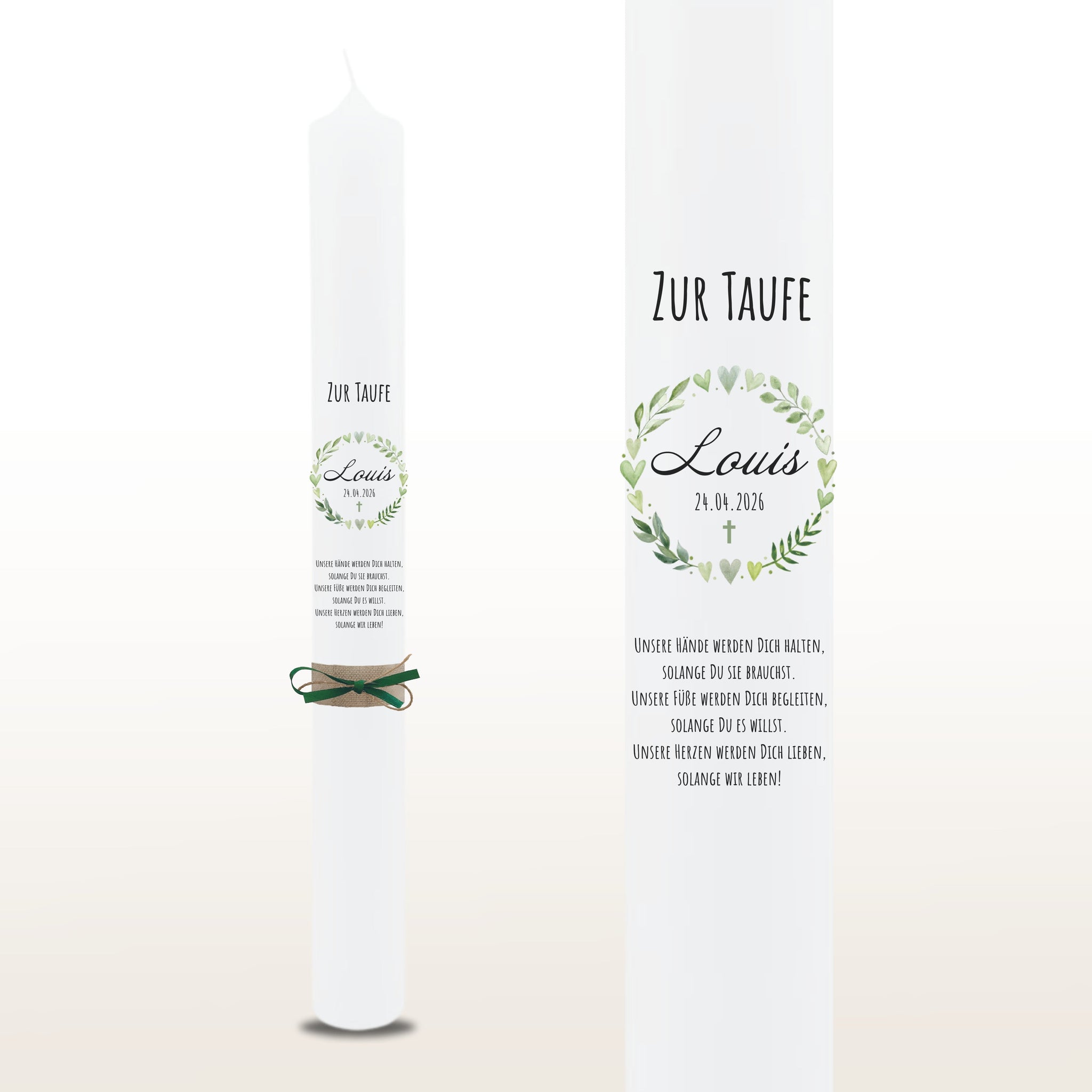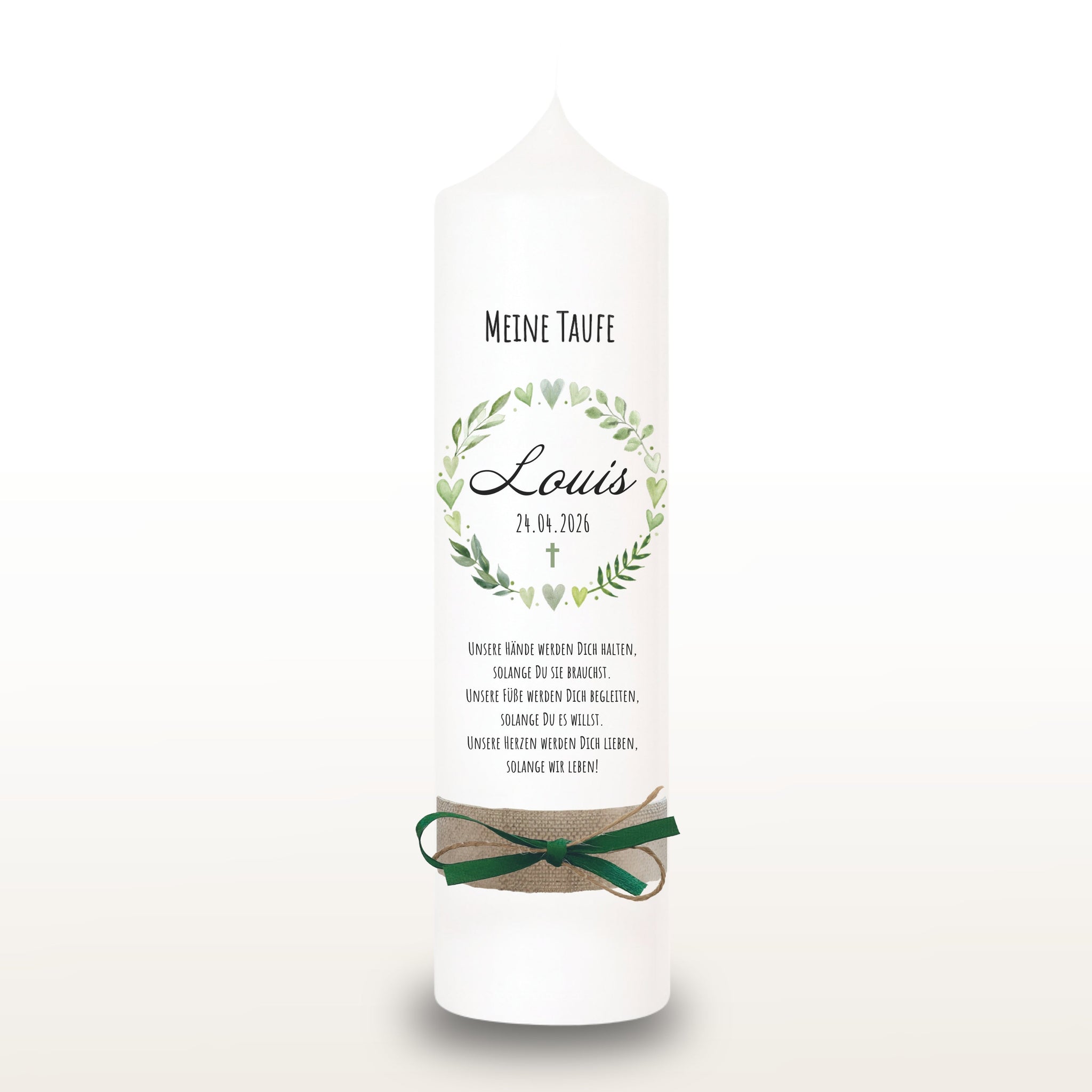 Taufkerze "Louis" Blätterherzenkranz - personalisiert