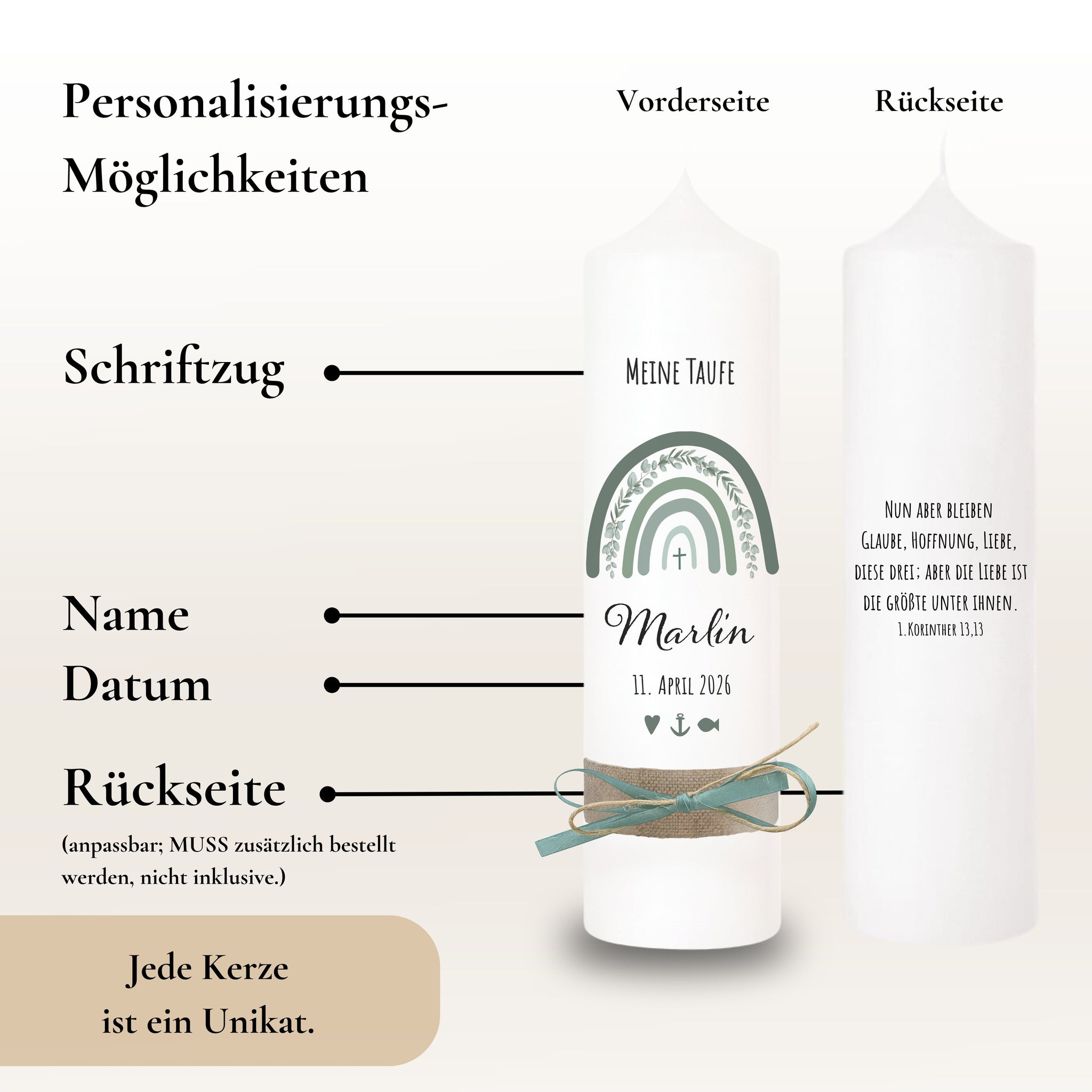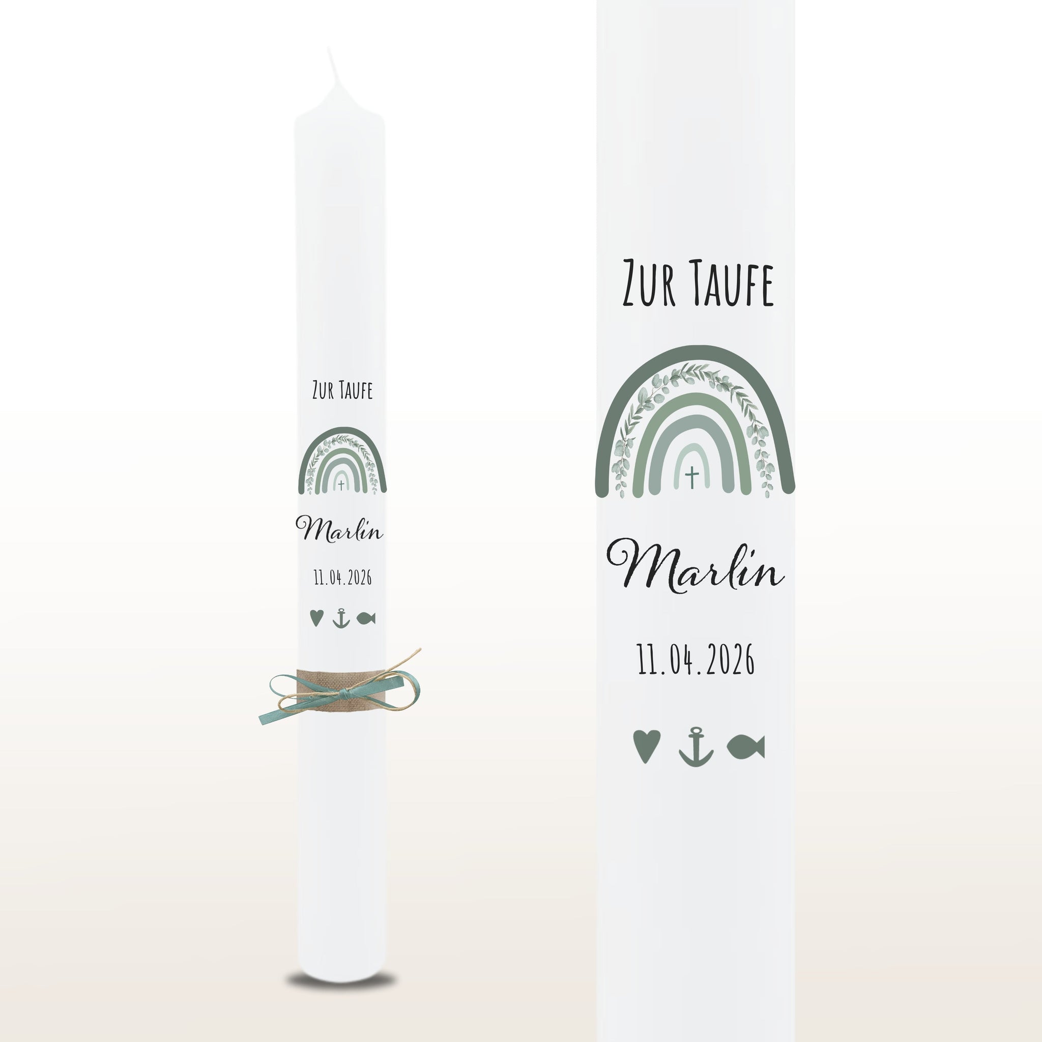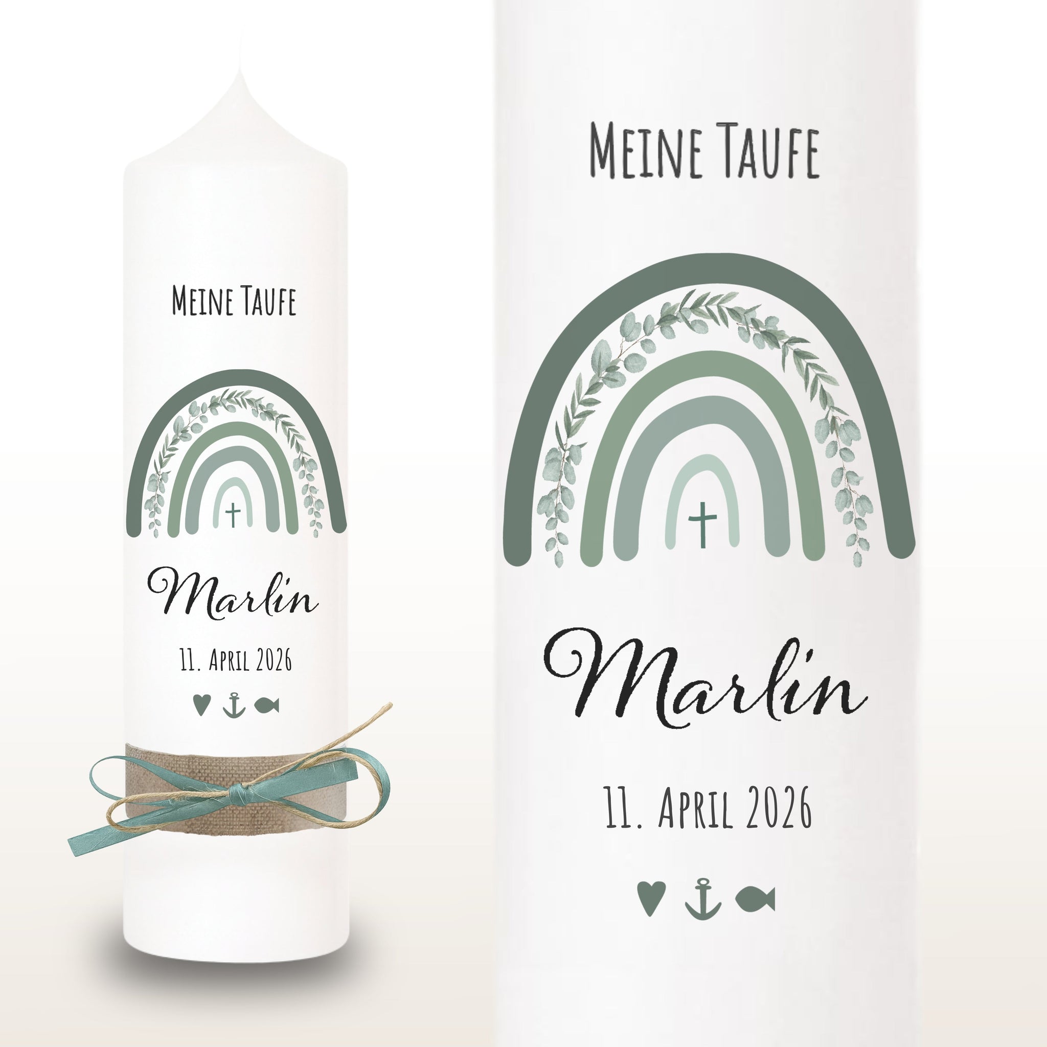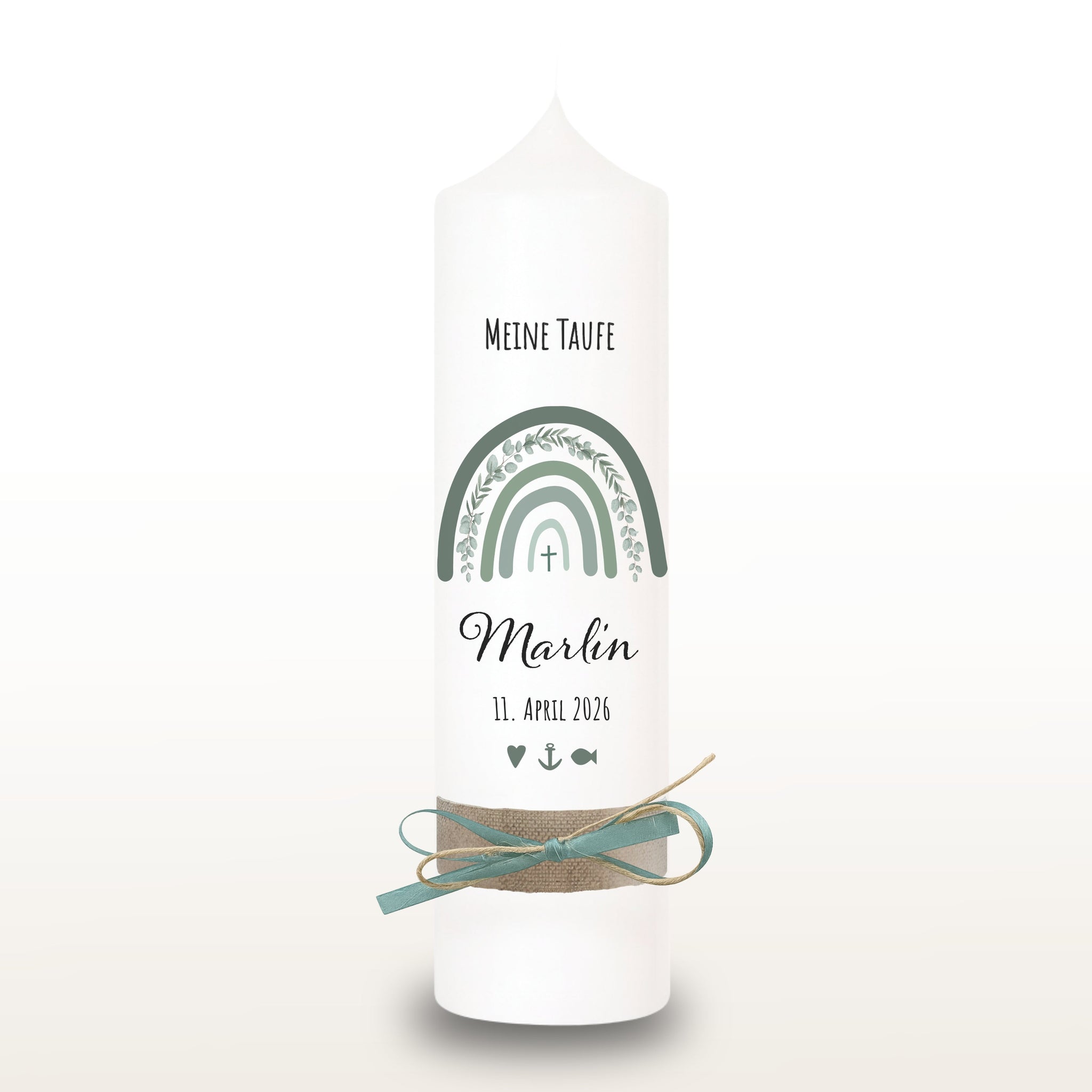 Nora Taufkerze "Marlin" Eukalyptus Regenbogen - personalisiert