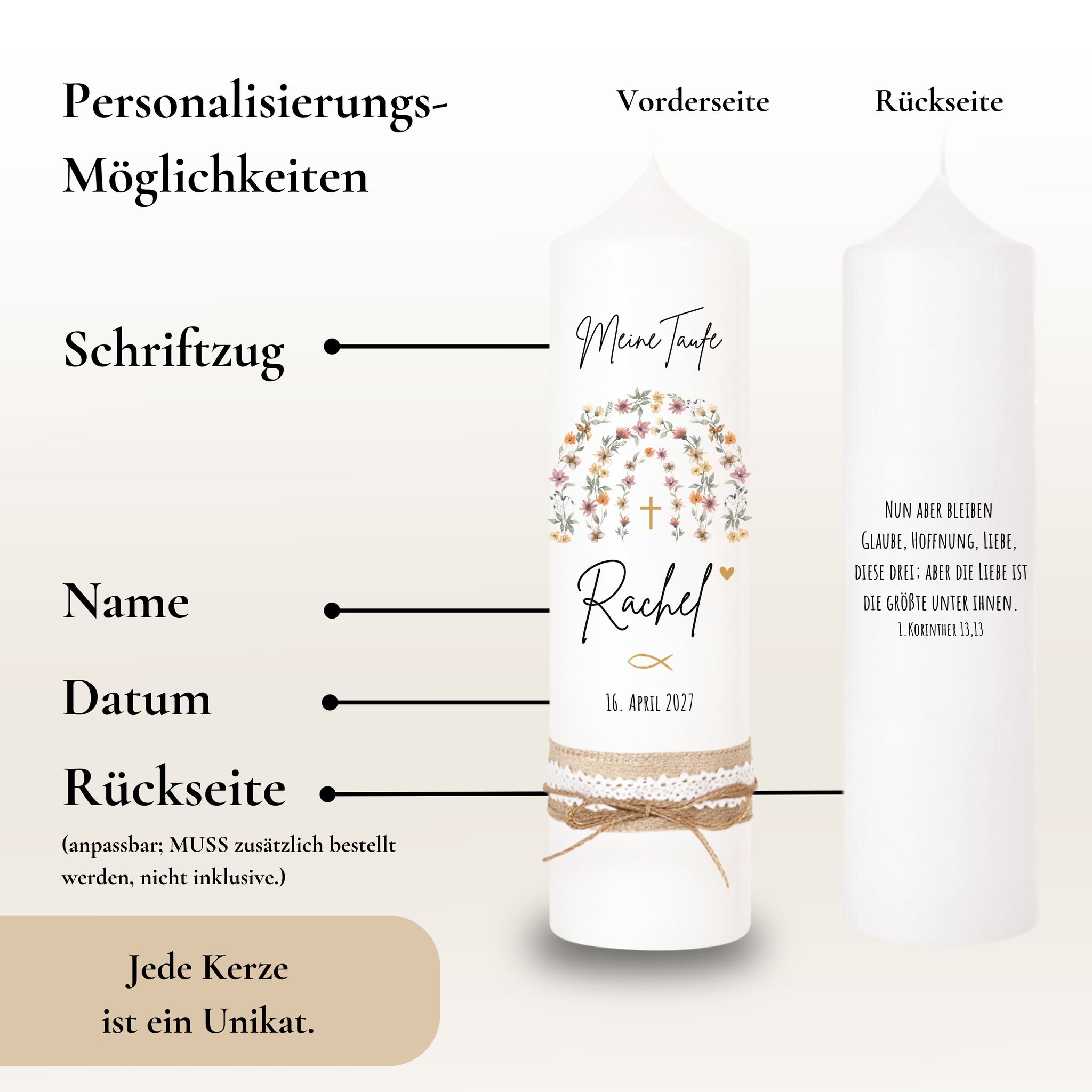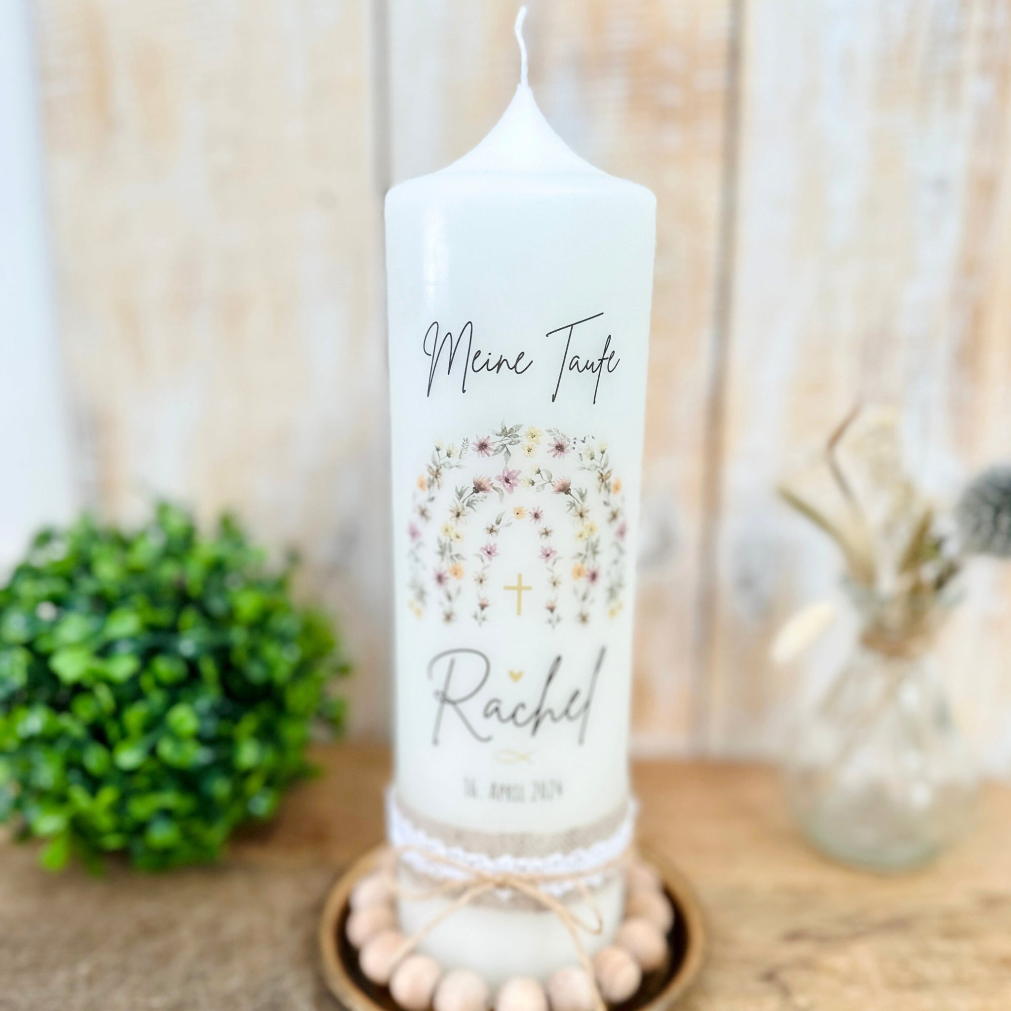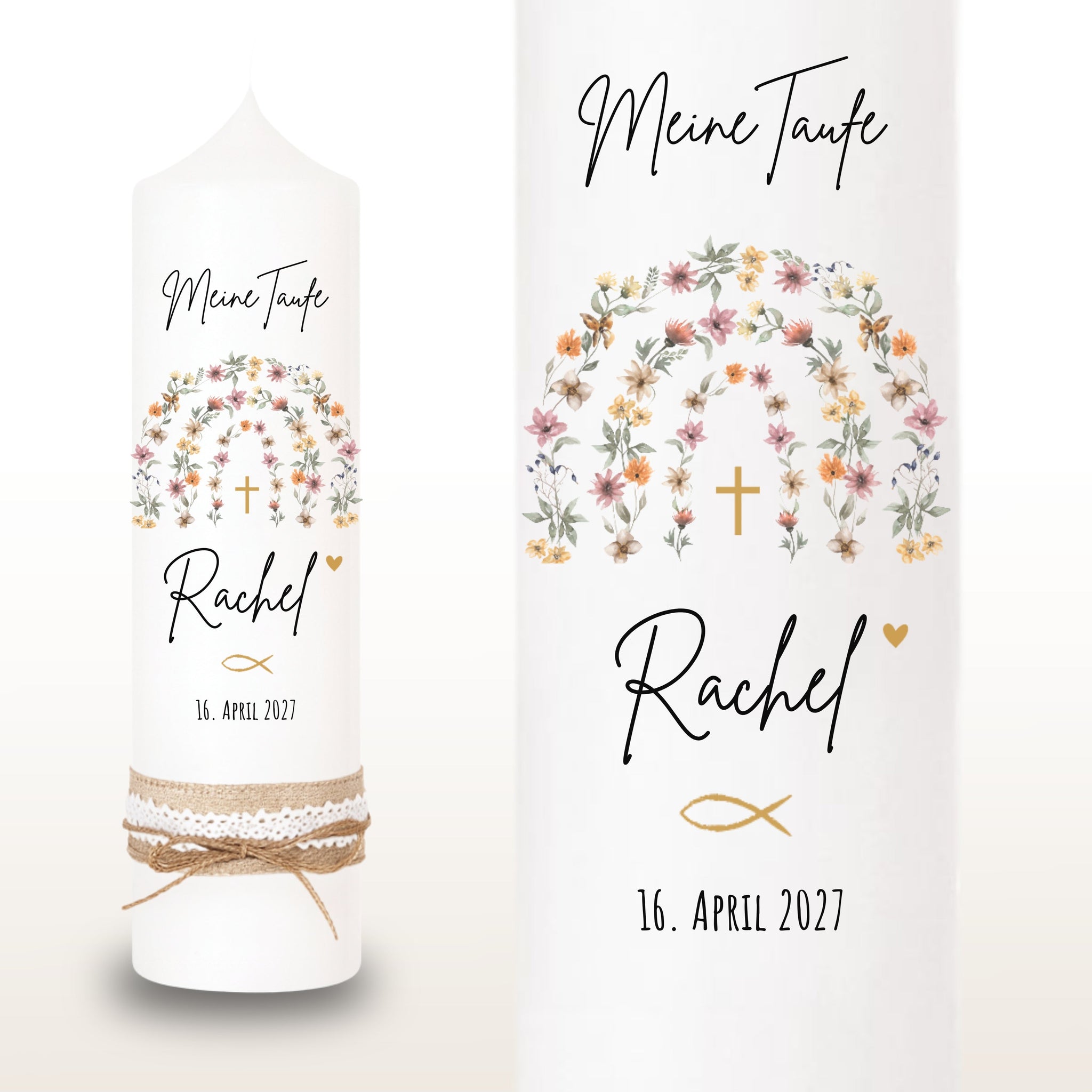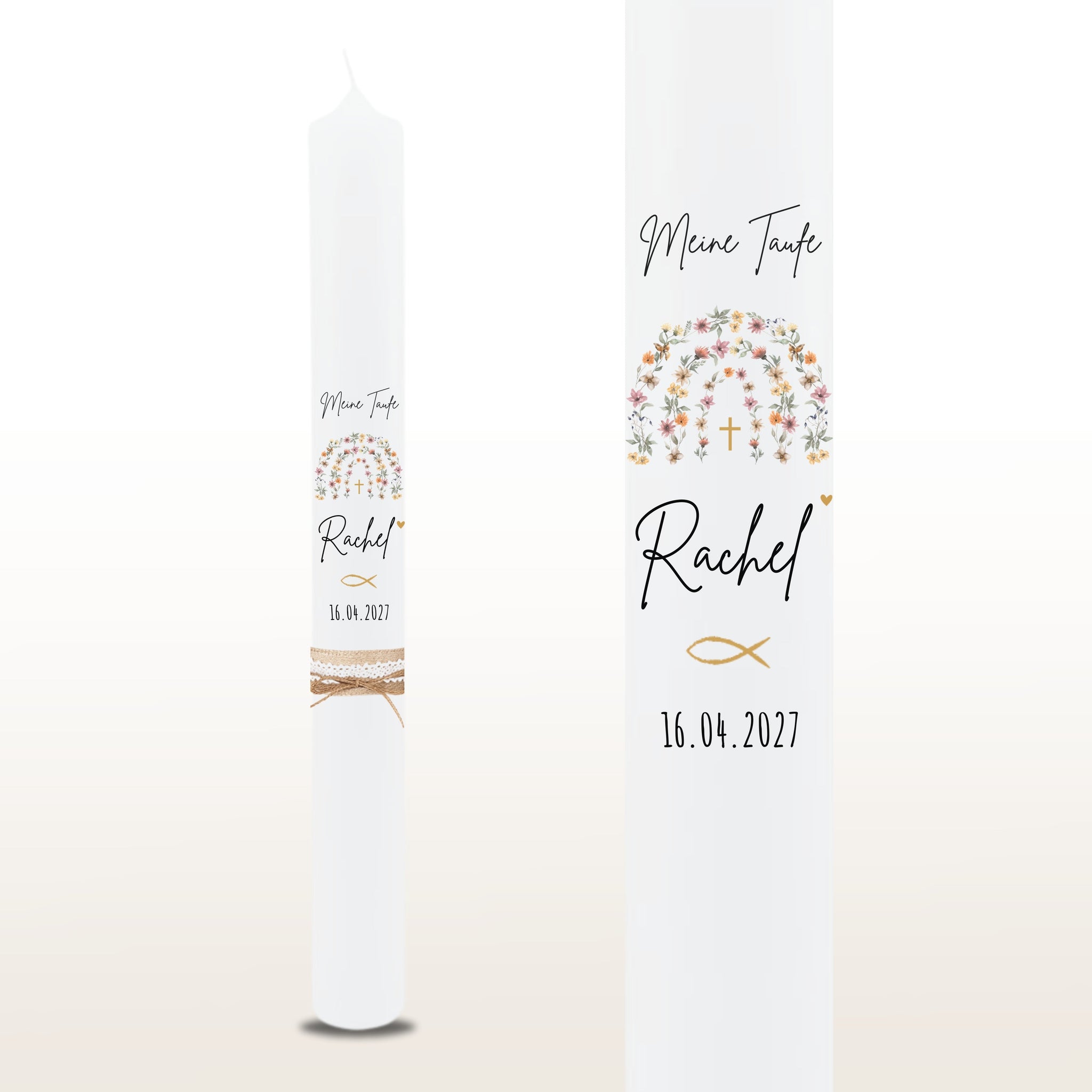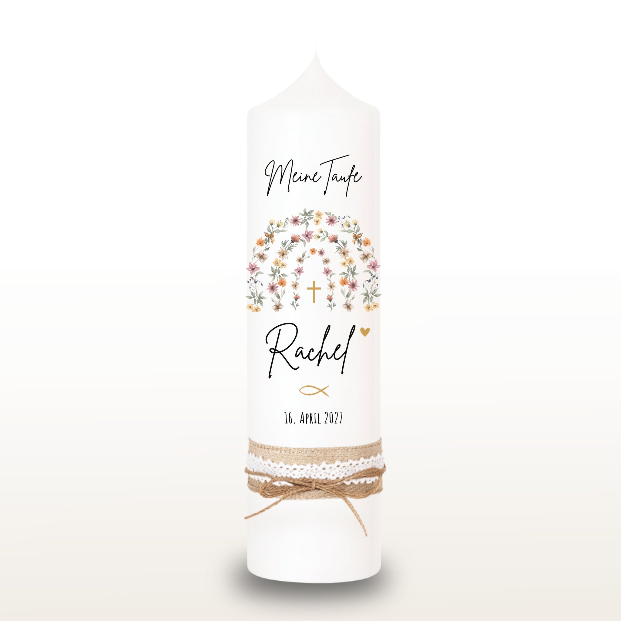 Taufkerze "Ronni Spitze" Blumen Regenbogen - personalisiert