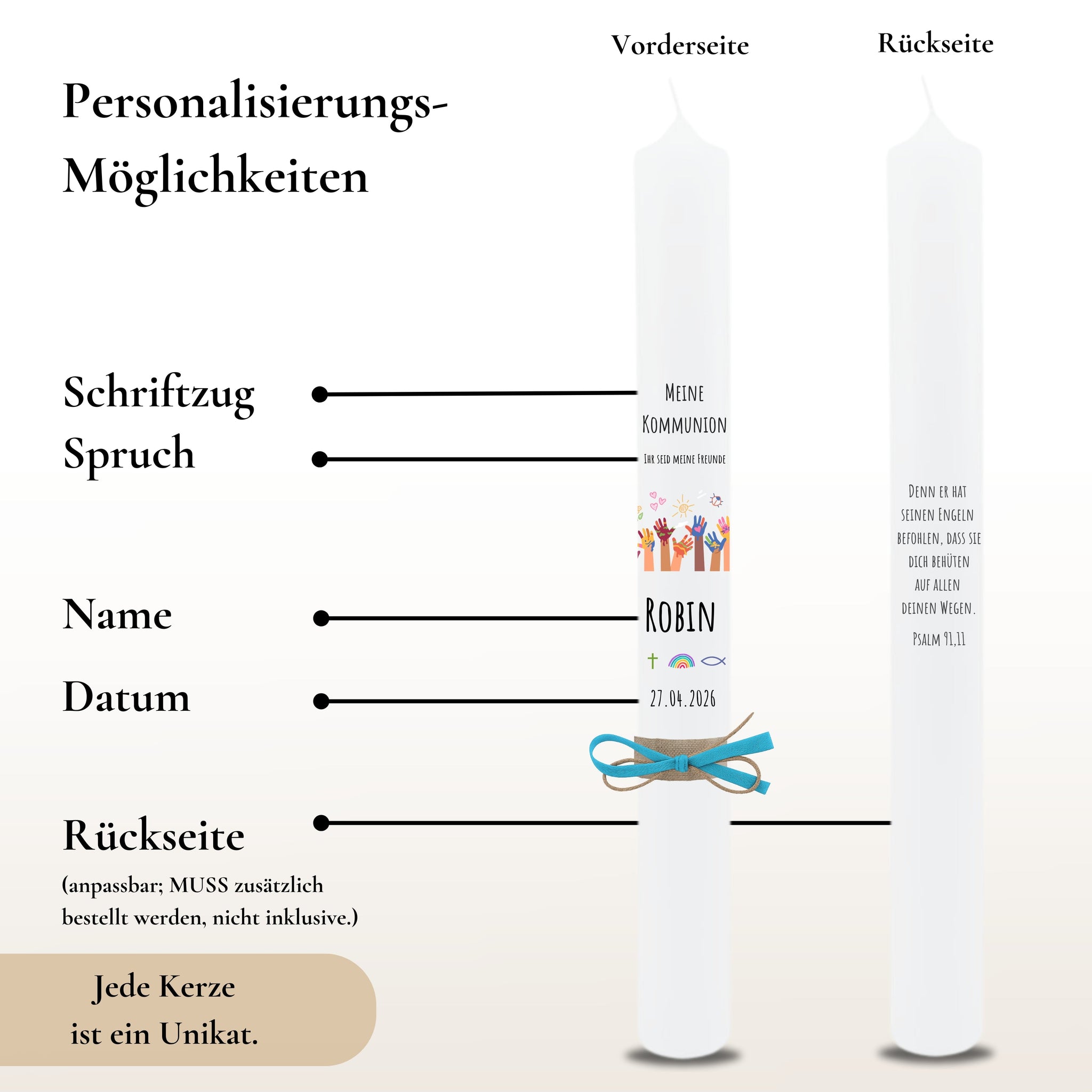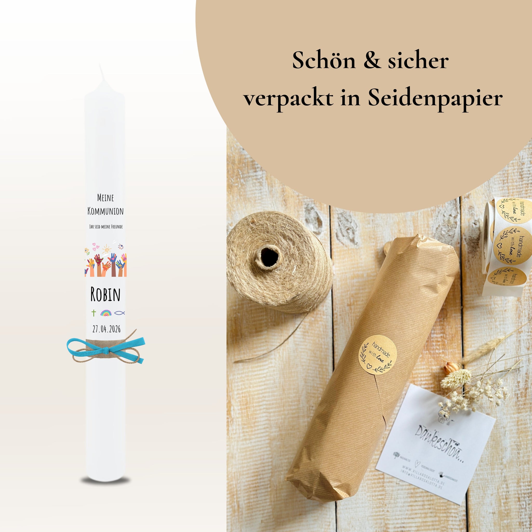 Kommunionkerze "Robin" - personalisiert