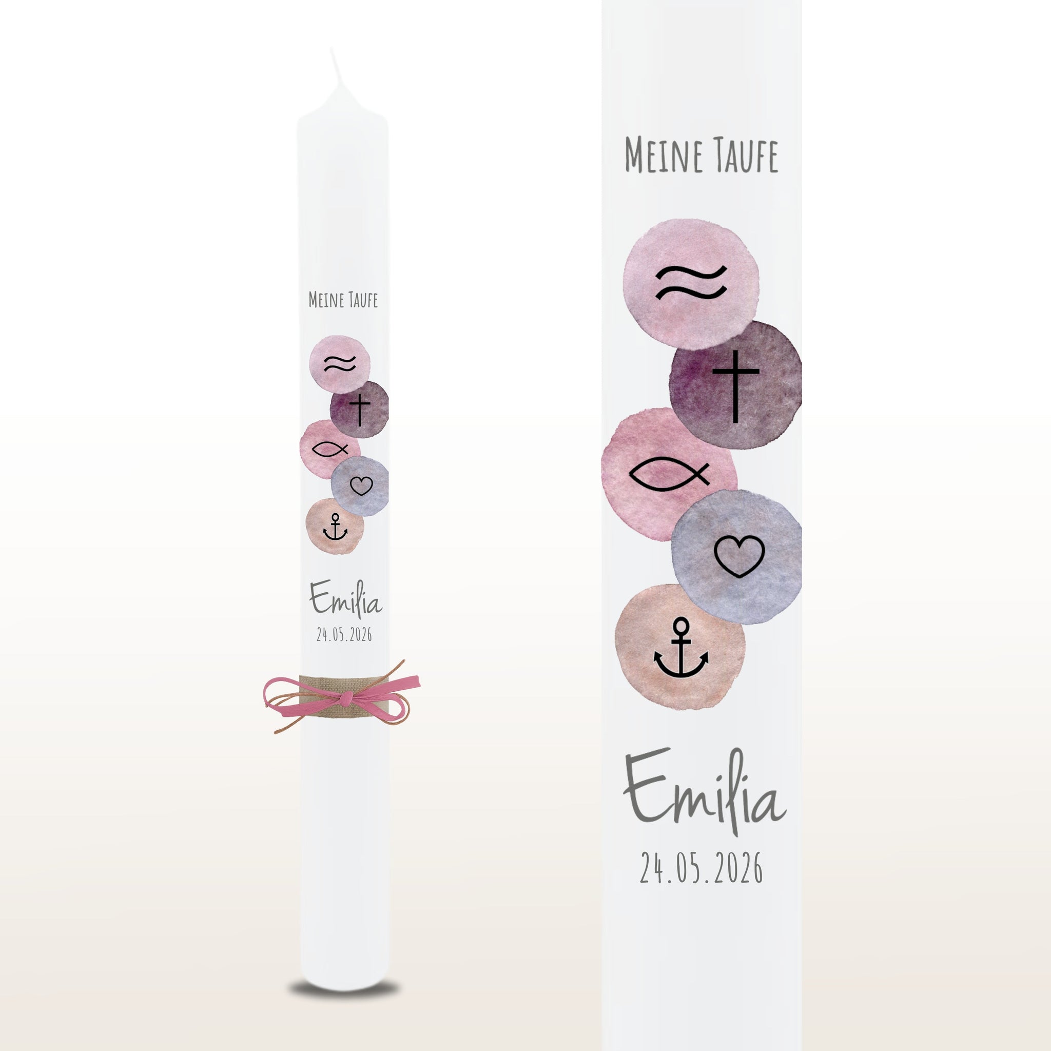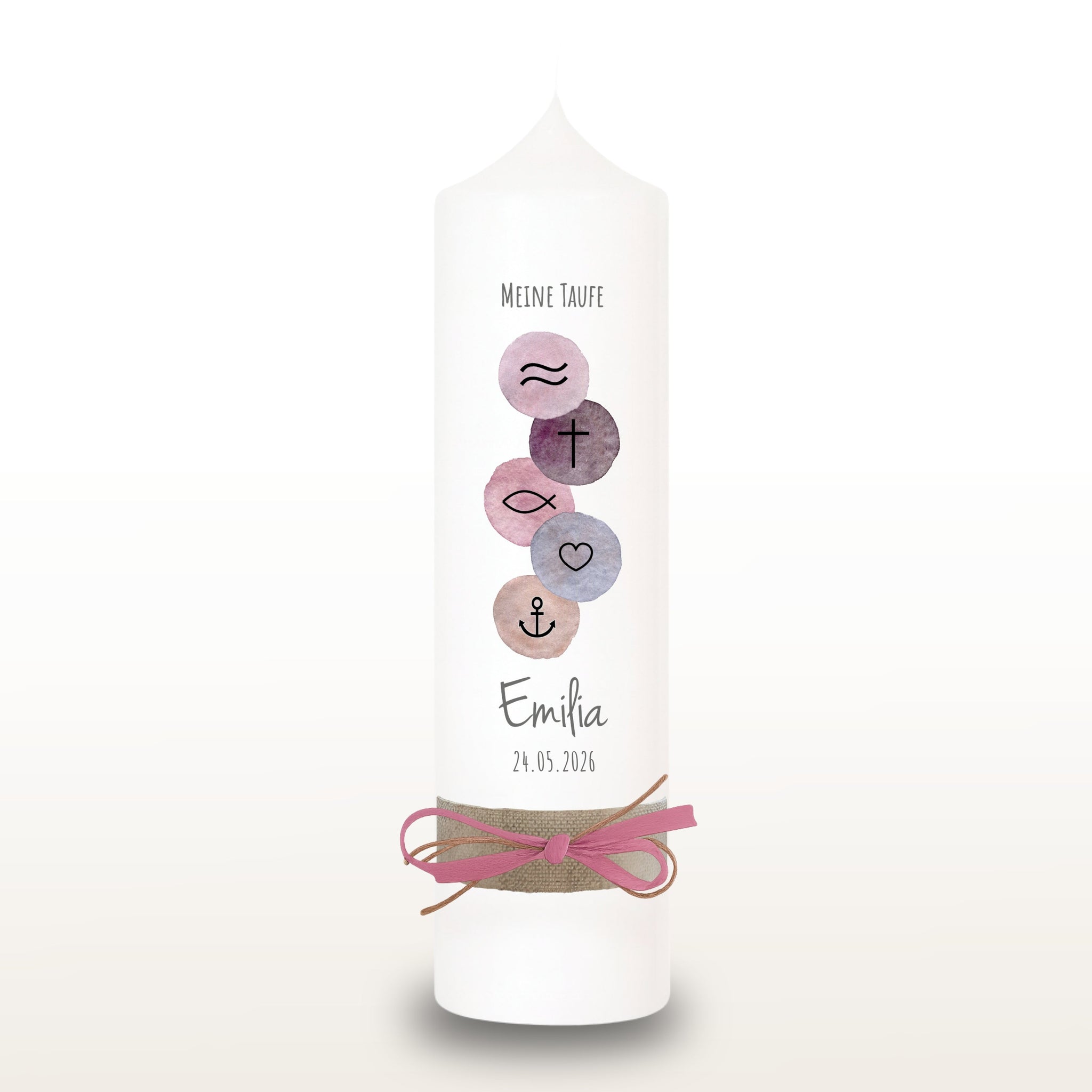 Taufkerze "Emilia" christliche Symbole - personalisiert
