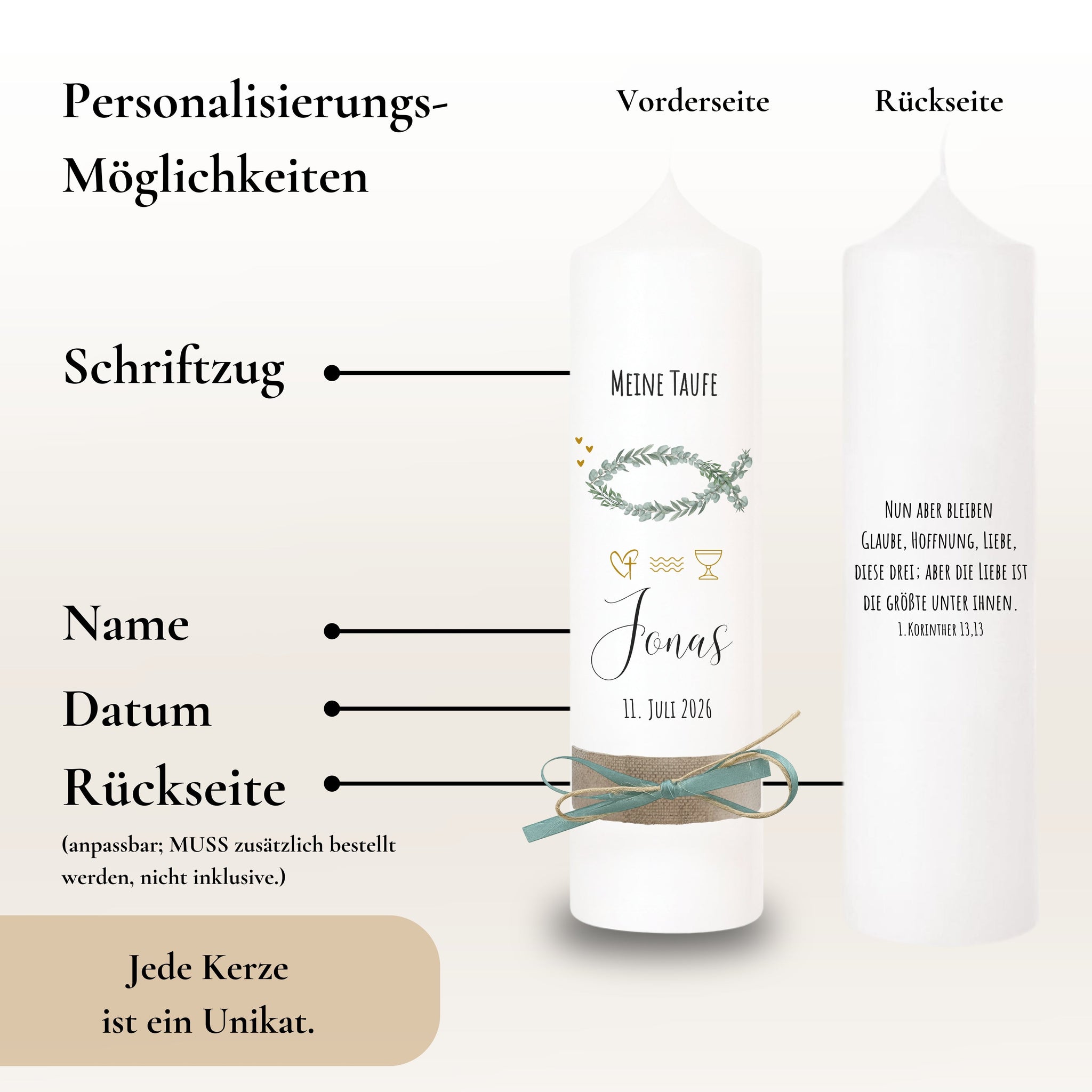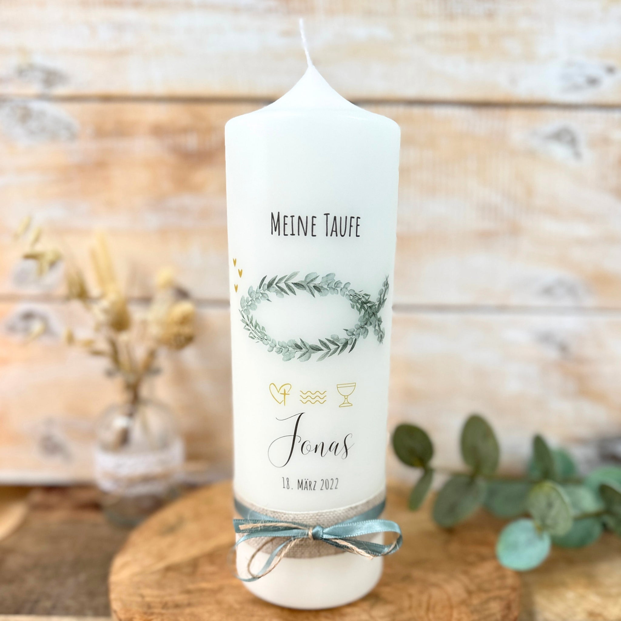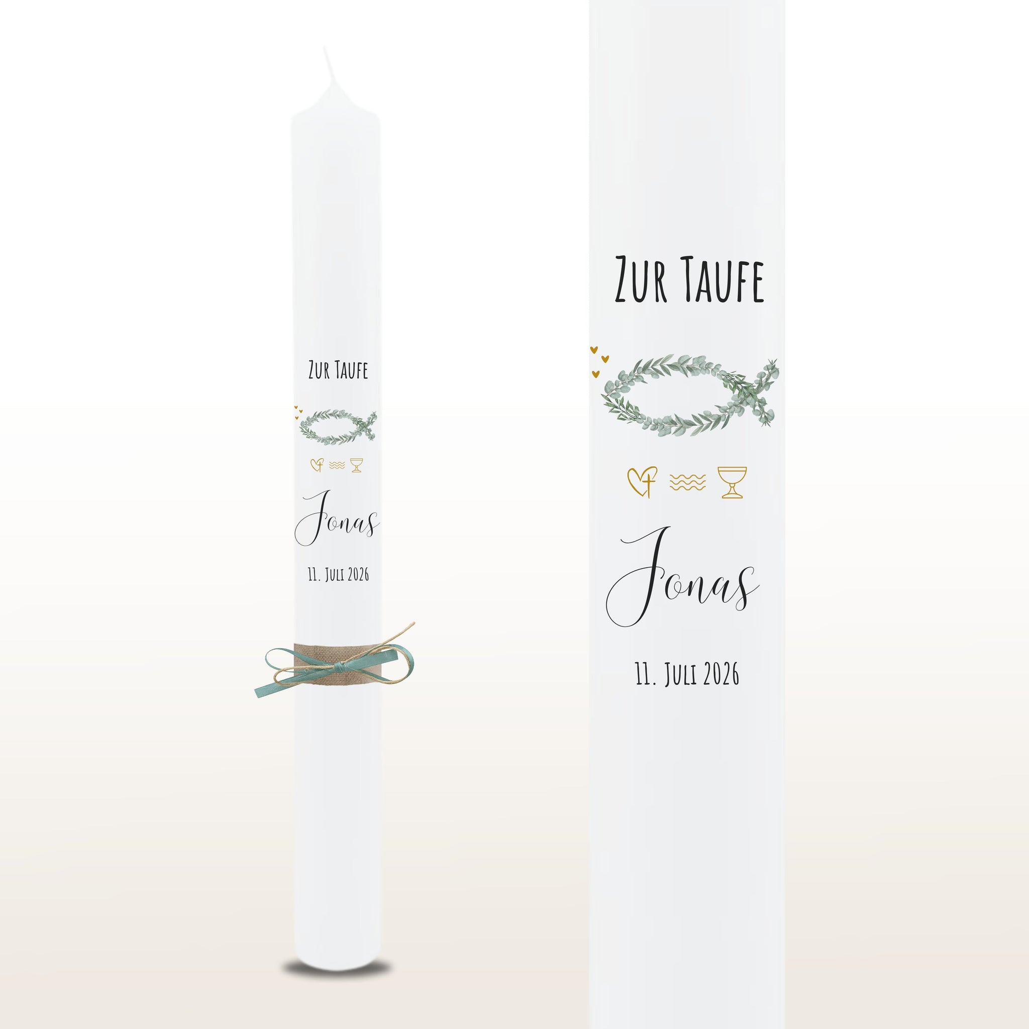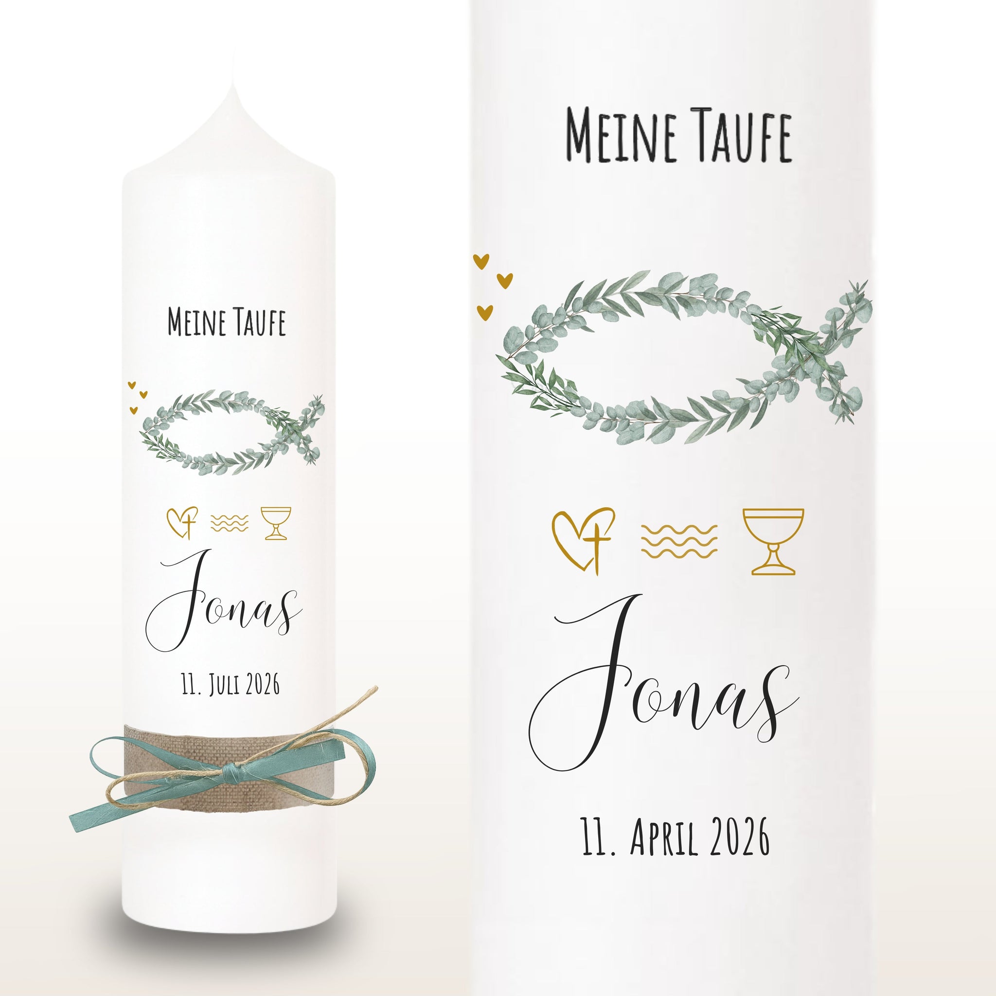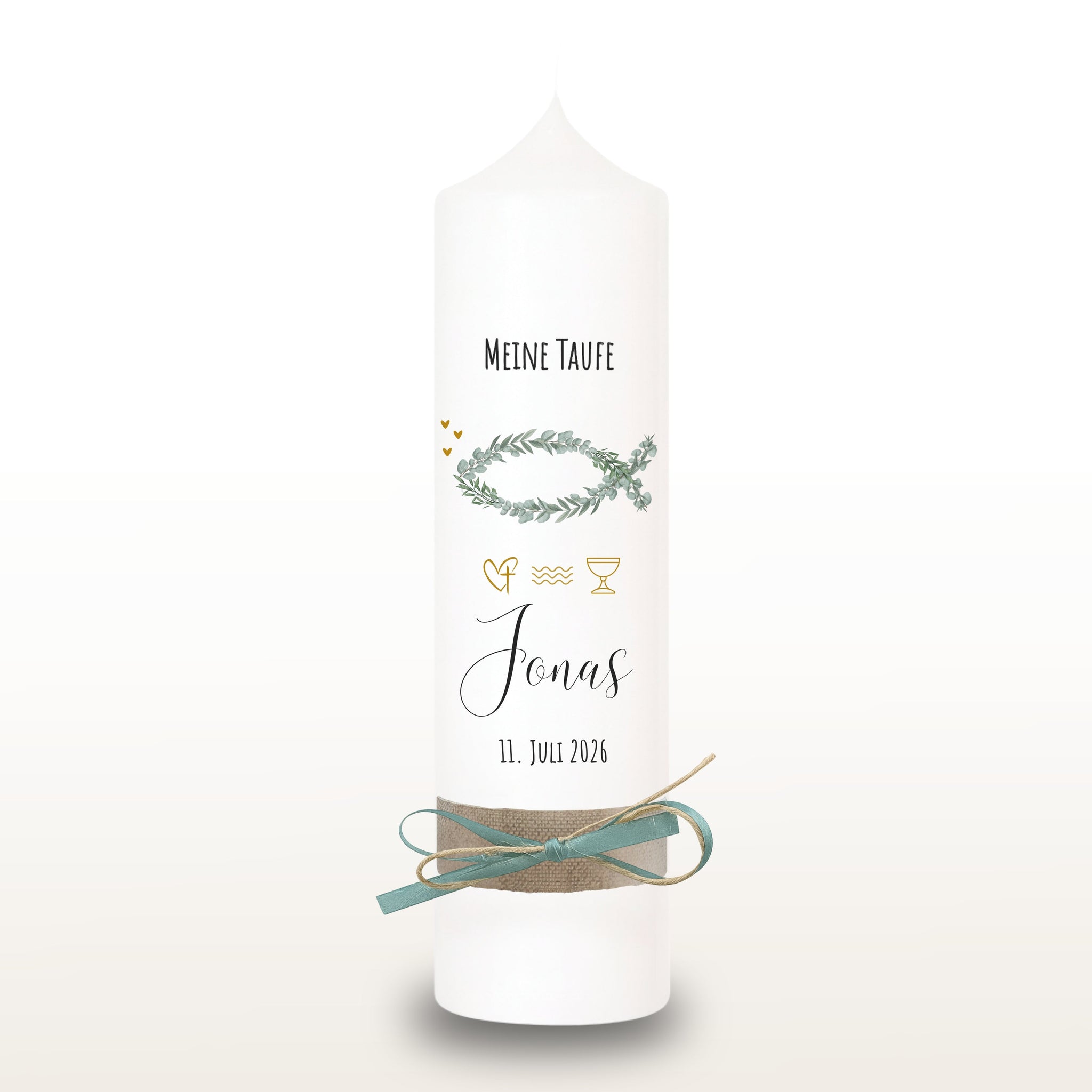 Taufkerze "Jonas" Eukalyptusfisch - personalisiert