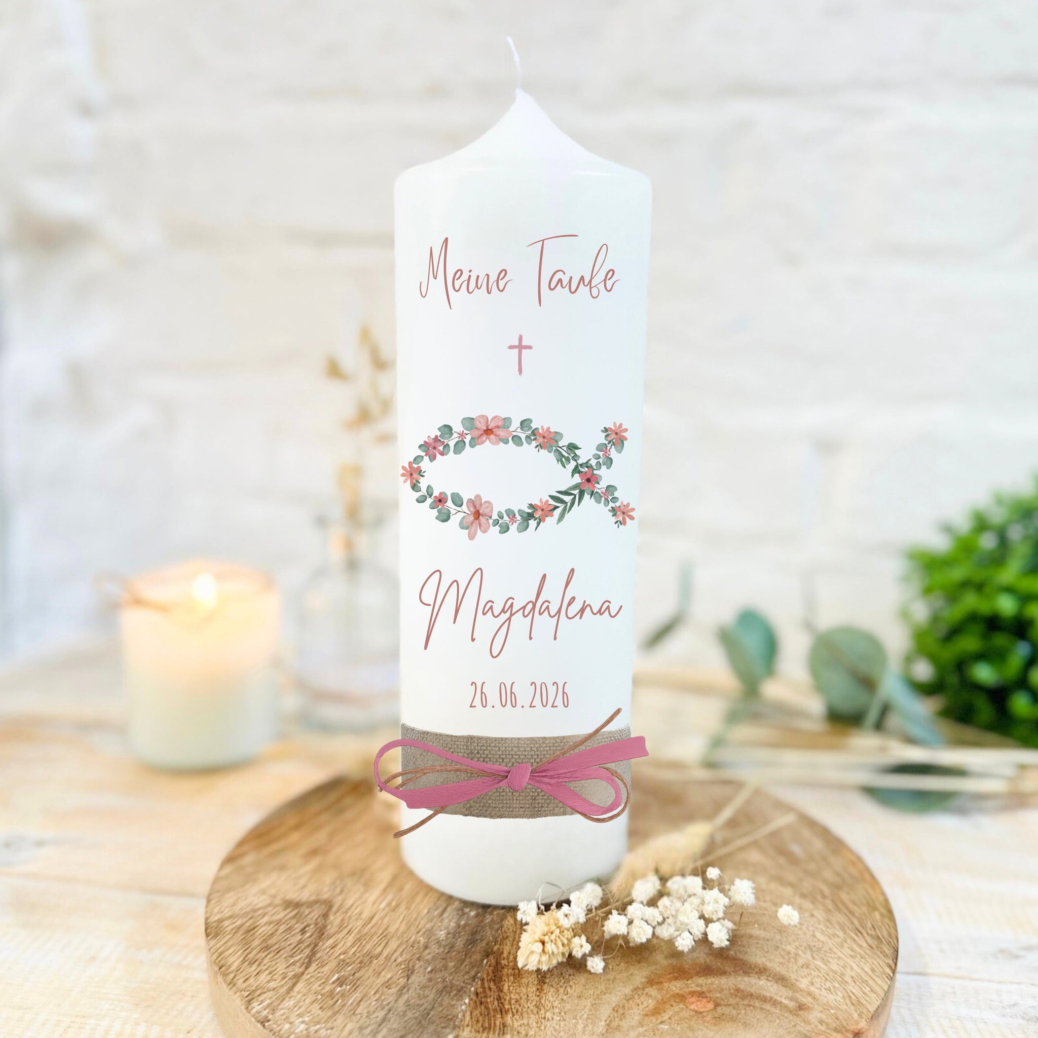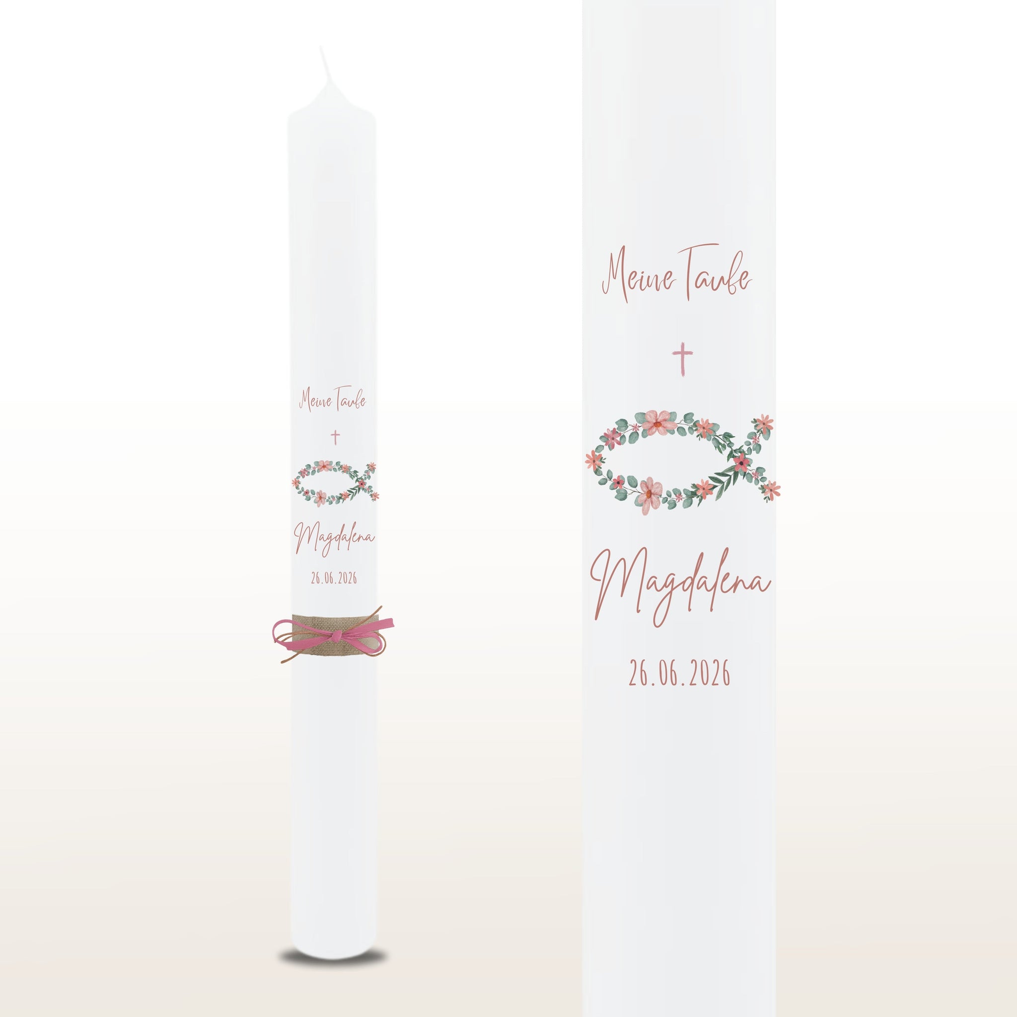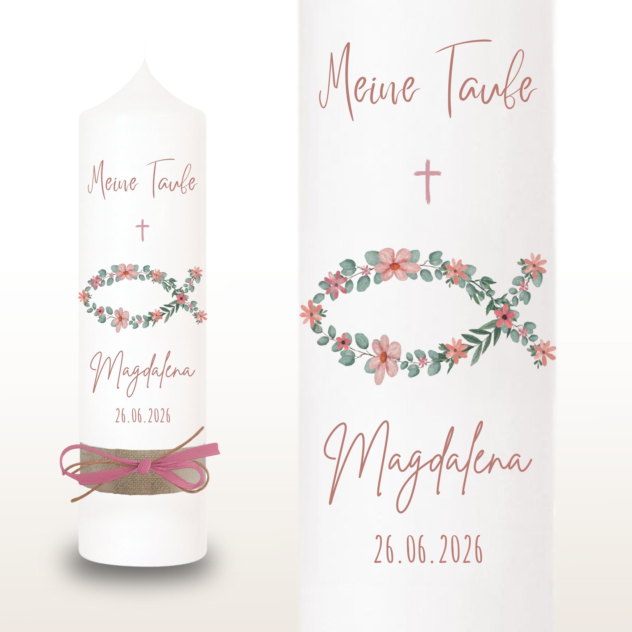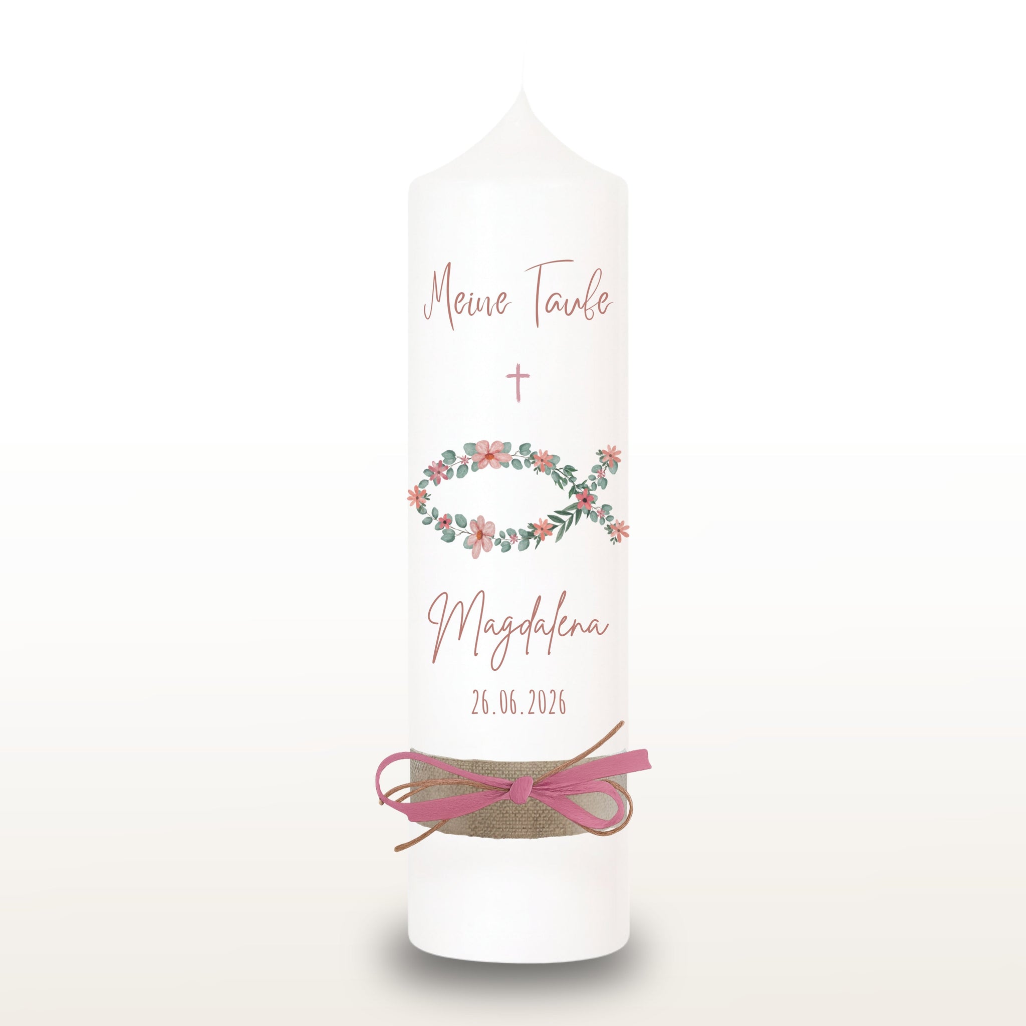Taufkerze "Magdalena" christliche Symbole - personalisiert