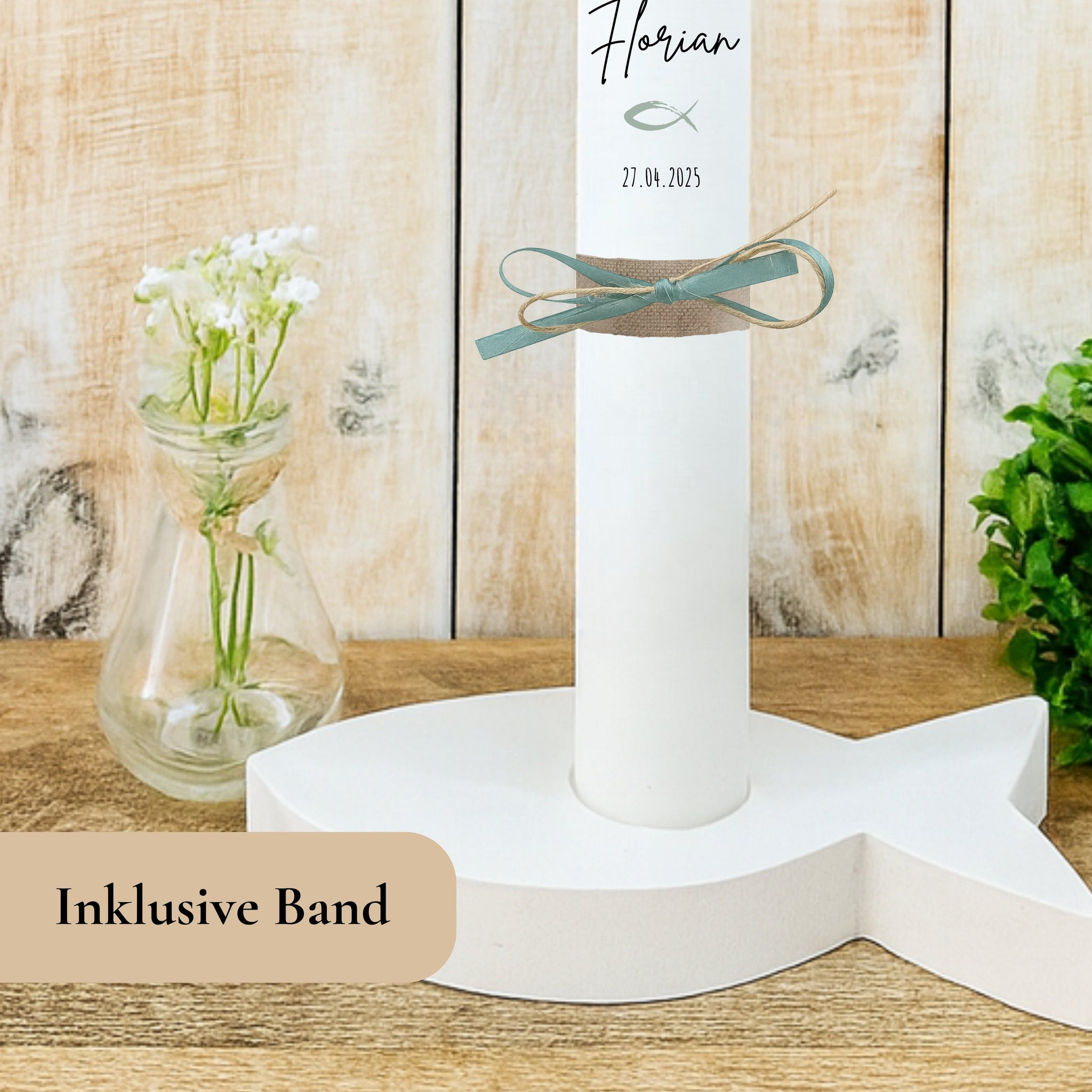 Individuelle und personalisierte Kommunionkerzen und Konfirmationskerzen für Jungen und Mädchen mit ausgefallenen Motiven, sowie passendem Zubehör - minimalistisch und modern.