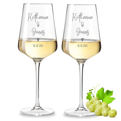 2er Set Weinglas personalisiert mit Gravur - Hochzeitsgeschenke mit Name & Datum Herz "Sarina" Leonardo
