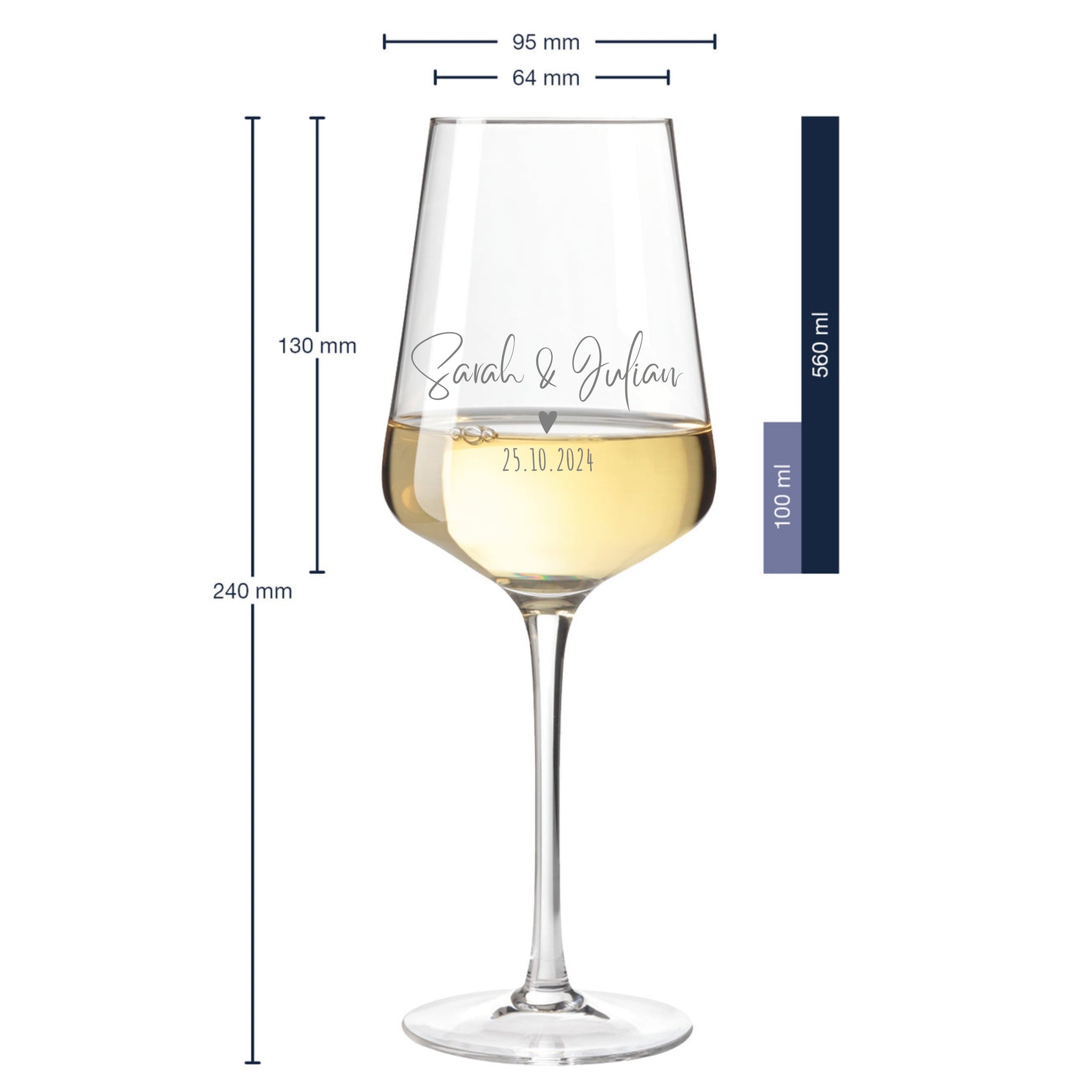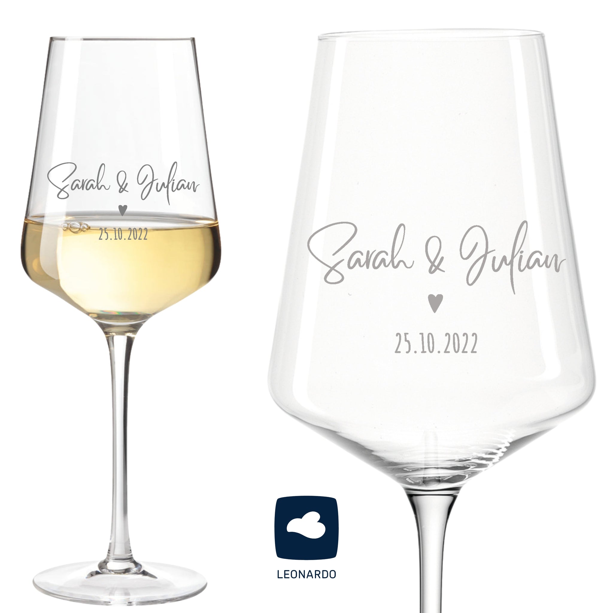 2er Set Weinglas personalisiert mit Gravur - Hochzeitsgeschenke mit Name & Datum Herz "Sarina" Leonardo
