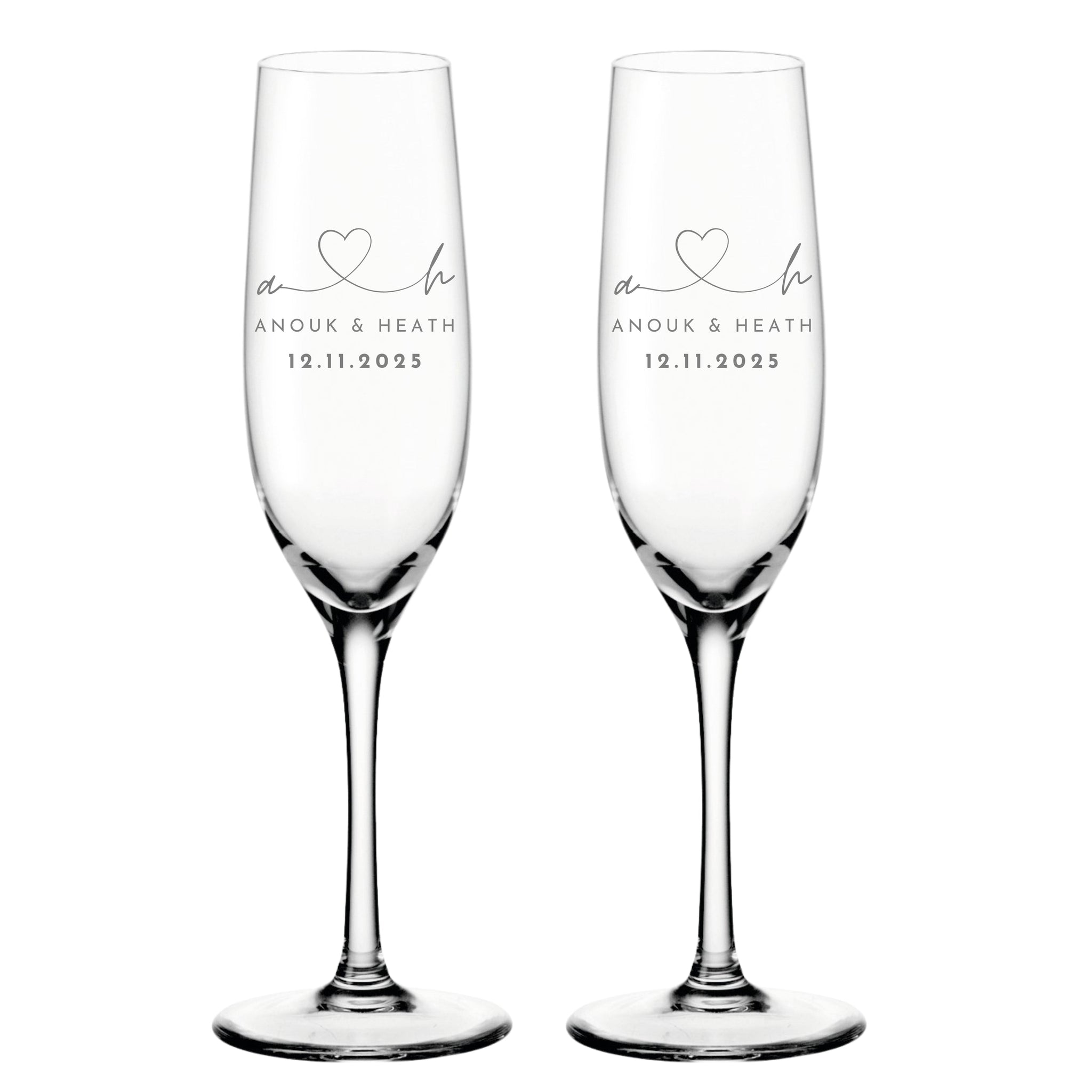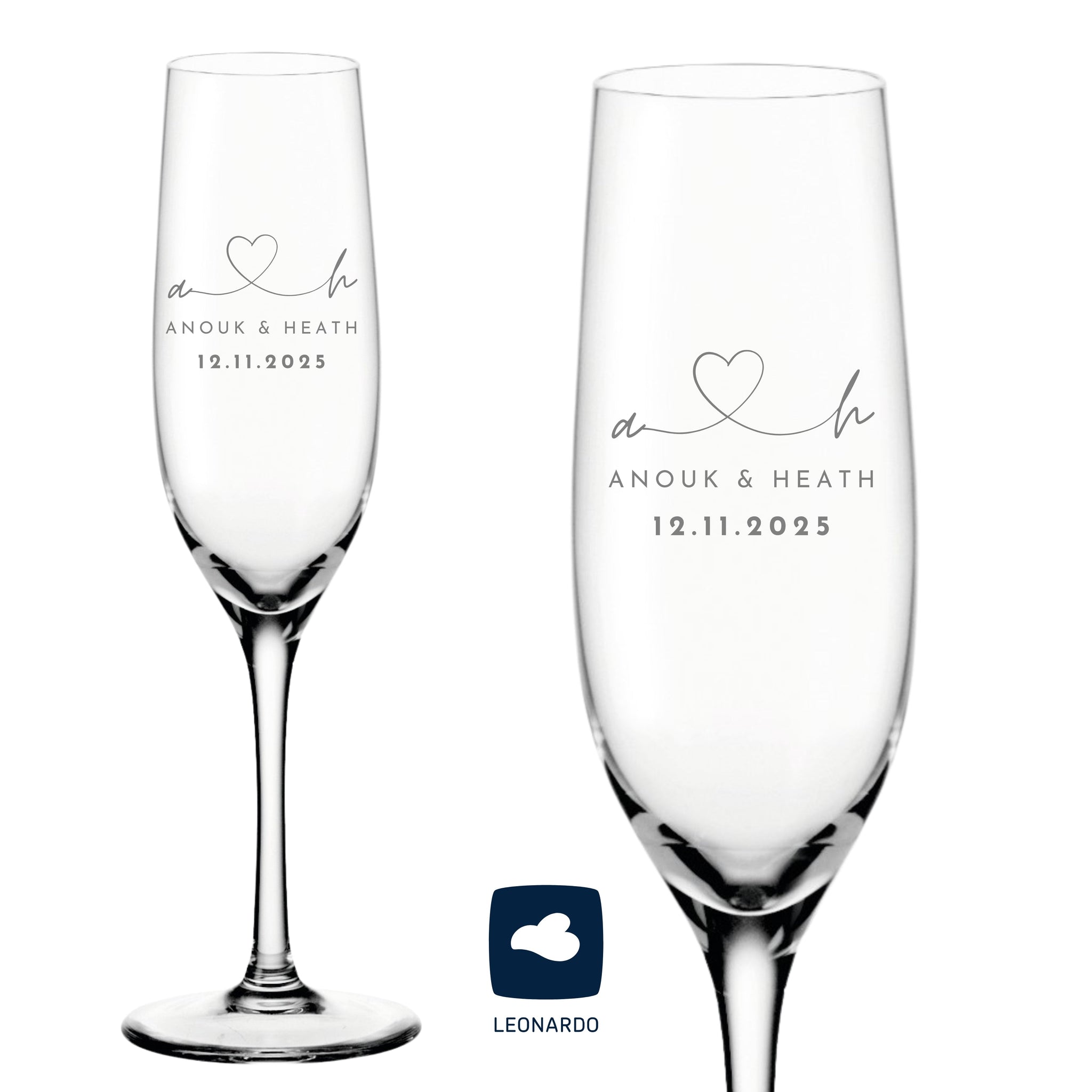 2er Set Sektglas personalisiert mit Gravur - Hochzeitsgeschenke mit Name & Datum "Anouk" Leonardo